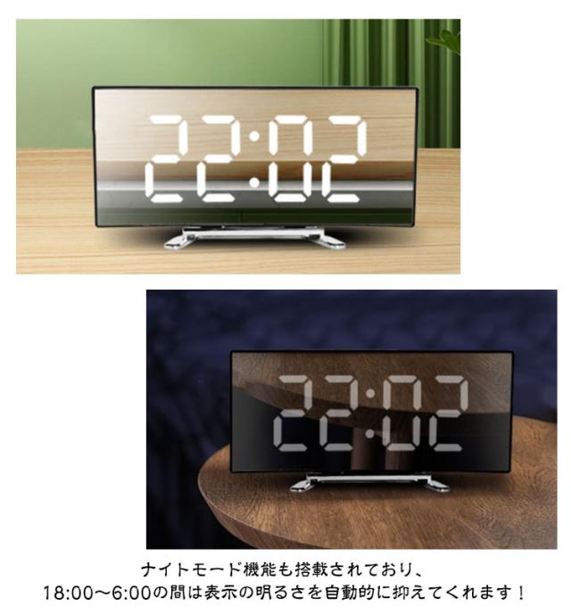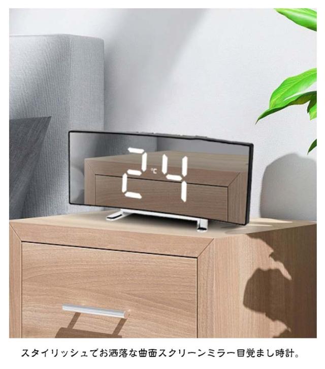 デジタル時計 目覚まし時計 ナイトモード 卓上 置き時計 卓上時計 LEDアラーム時計 デジタル表示 LED表示 USB給電 ミラー時計 スヌーズ機能 曲面パネル 曲面スクリーン 目覚まし時計 アラーム機能 日付表示 温度表示