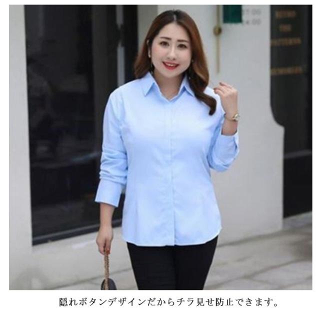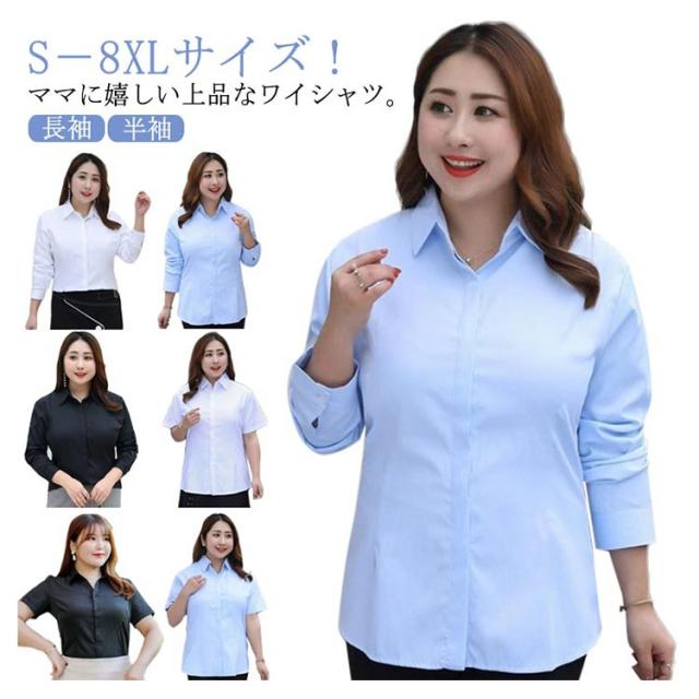 送料無料 S−8XLサイズ!ブルー シャツ レディース ワイシャツ 大きサイズ 9L 8L Yシャツ 半袖 長袖 無地シャツ フォーマルシャツ 通勤 入学式 卒業式 トップス ママ スーツ チラ見せ防止