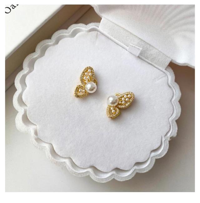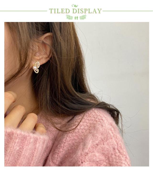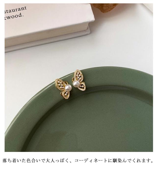 蝴蝶 バタフライ イヤリング ジルコニア ビジュー イヤリング ピアス見え キラキラ パール イヤリング レディース アクセサリー 高見え 金属アレルギー対応 ノンホール 送料無料