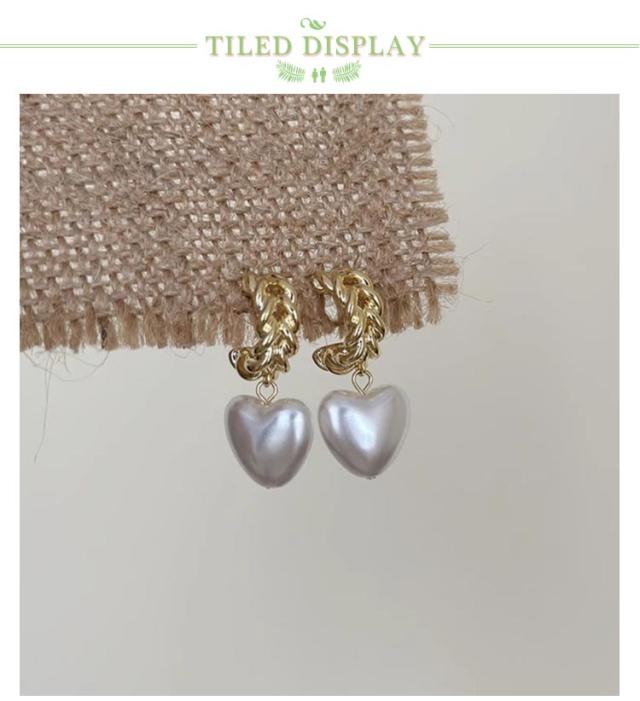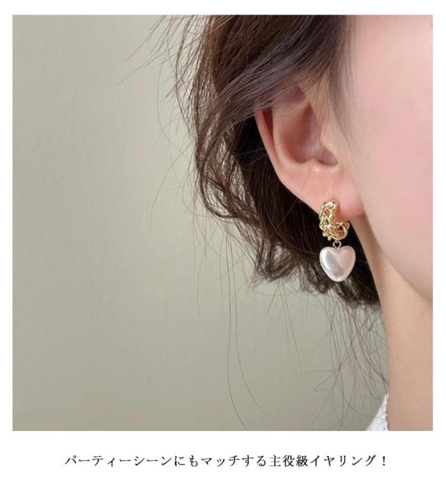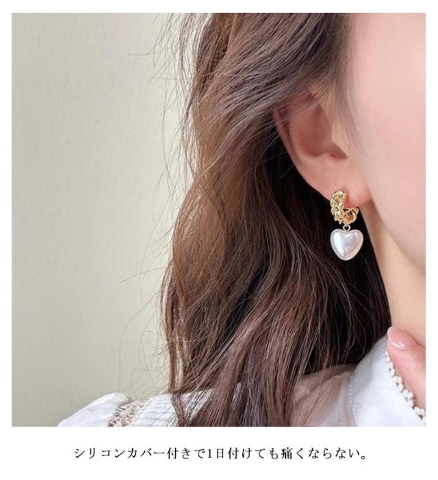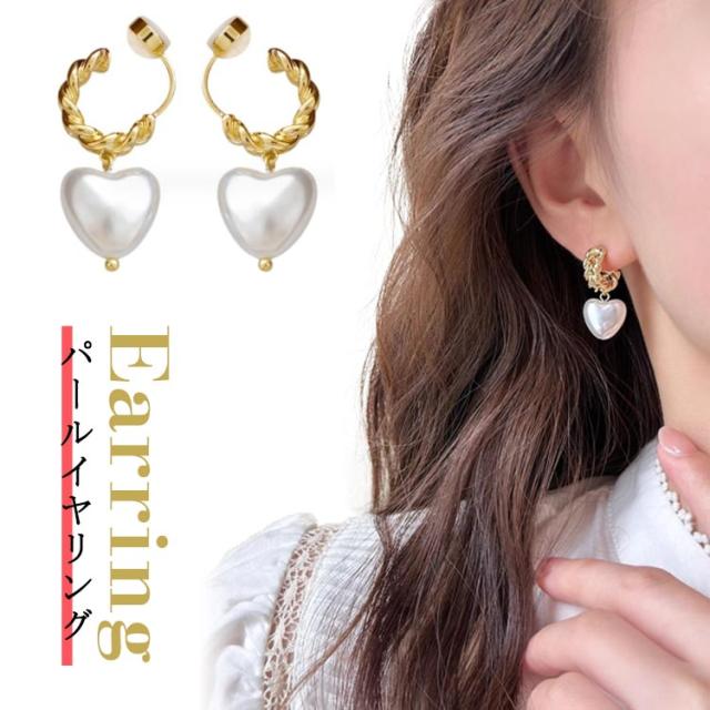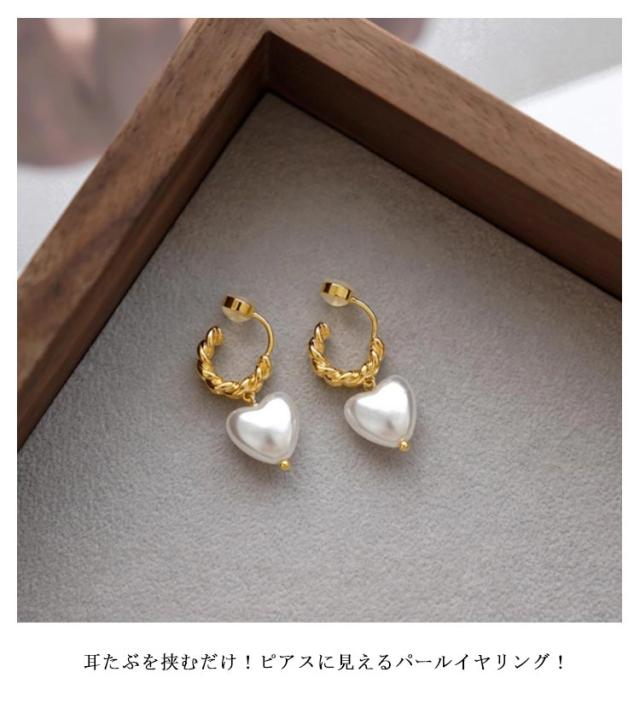 ハート パール イヤリング レディース アクセサリー 両耳用 人工パール イヤリング ピアス見え イヤリング 高見え 金属アレルギー対応 ノンホール ピアス 痛くない イヤリング 小顔効果 イヤーカフ イヤーカフス 結婚式 パーティー エレガント 送料無料