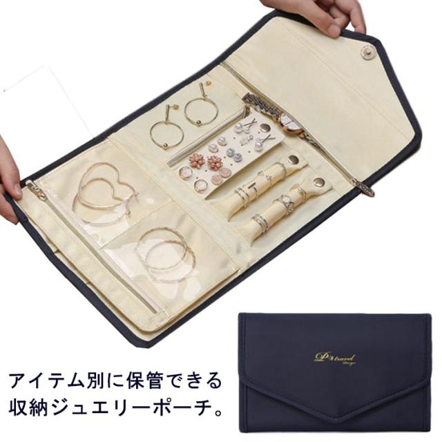ジュエリーポーチ アクセサリーポーチ トラベルポーチ 折りたたみ式 ネックレス ジュエリー収納 ジュエリーケース 腕時計収納 指輪 イヤリング 小物 ポーチ 携帯用 旅行 プレゼント ギフト 送料無料