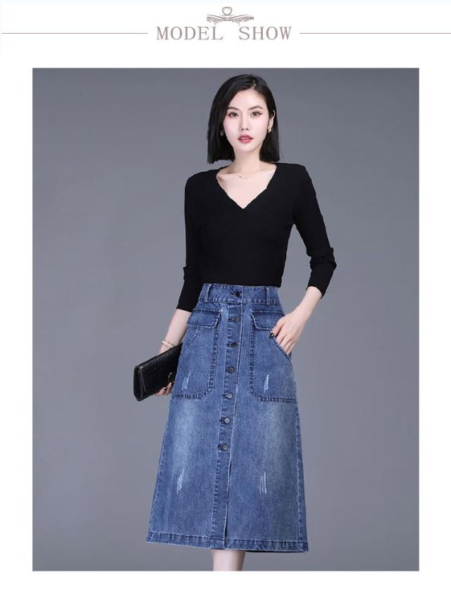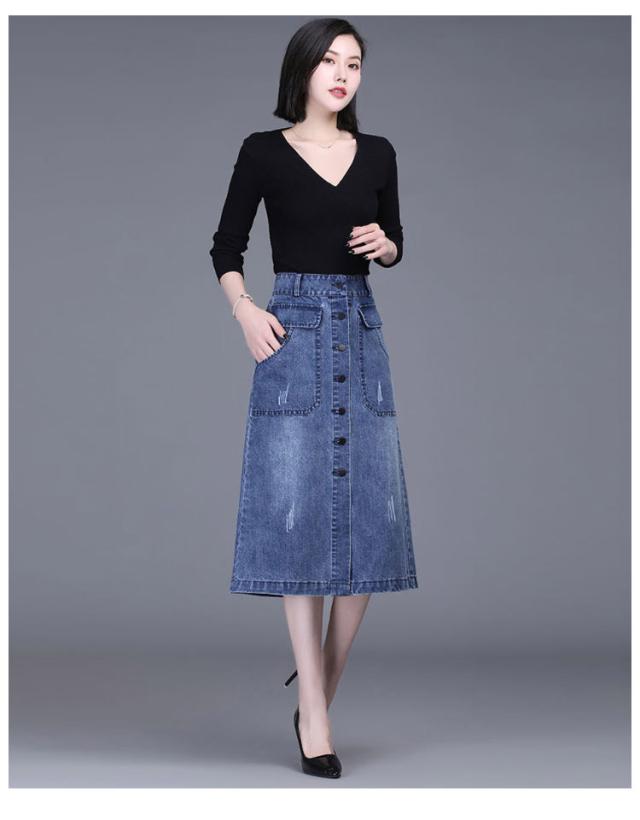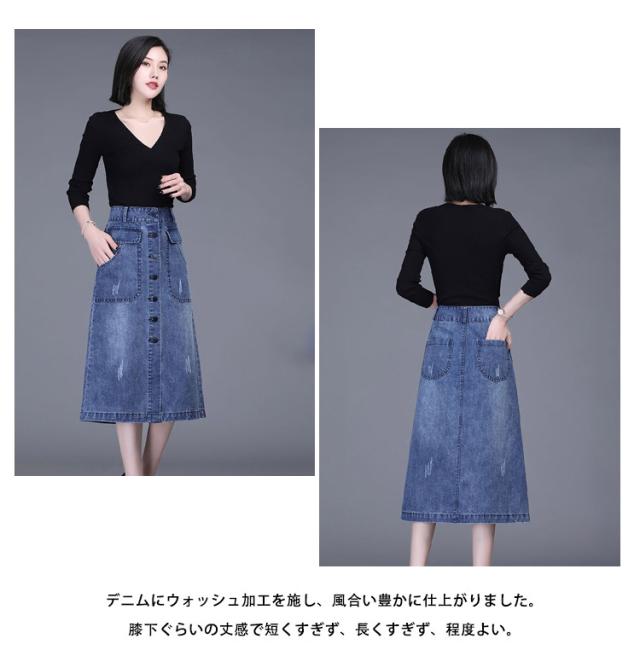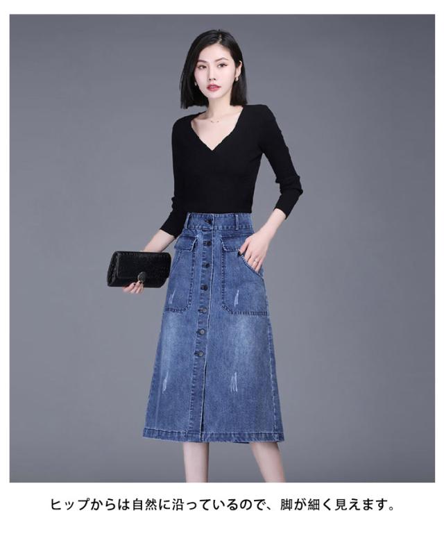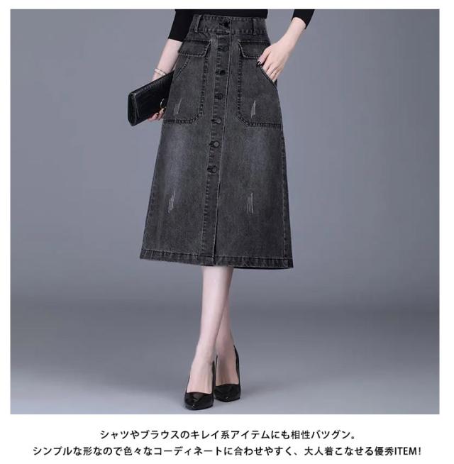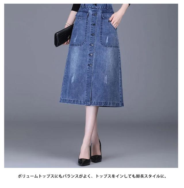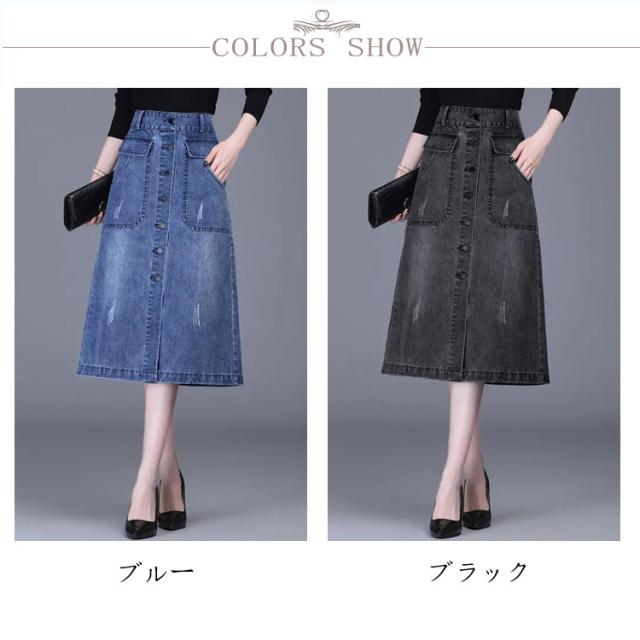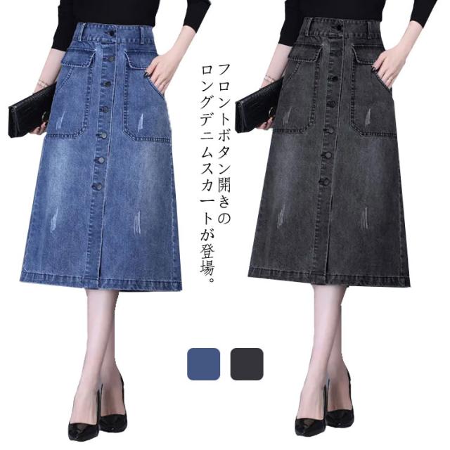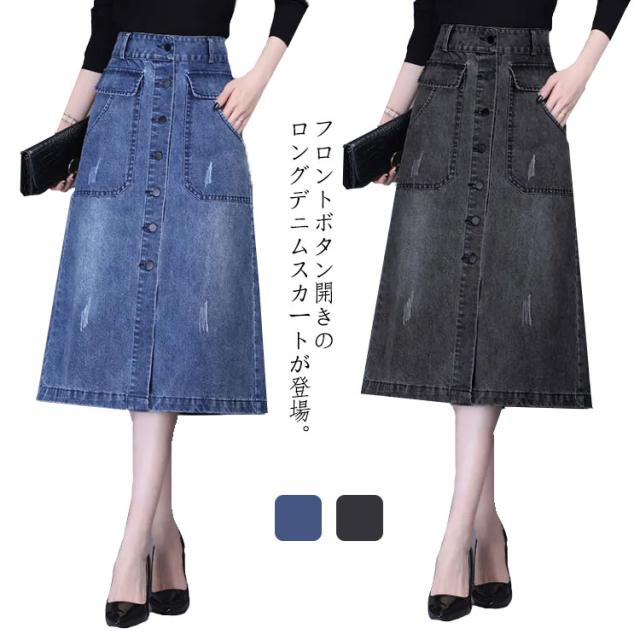 送料無料 デニム スカート ボタン全開 デニムスカート ロングスカート 膝下丈 Aラインスカート 綿混 春 秋 冬 30代 40代 カジュアル キレイめ おしゃれ