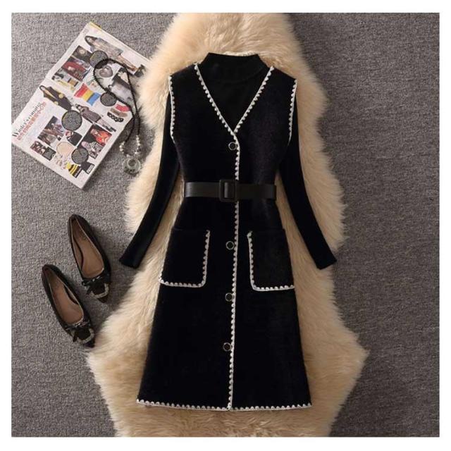 | 黒ニットセーターとロングニットベストワンピースのセットアップ。 もちろん単品それぞれコーディネートも可能。 ベストワンピースはボタン開き、ウエストベスト付きですっきりとしたラインが演出できます。 大きめのポケット2個設置、小物収納にも便利。 厚くすぎず薄くすぎず、柔らかいニット素材だから防寒効果一番。 普段の通勤や通学などデイリー使いからキャンプや旅行などのお出かけにもおすすめ!! | |