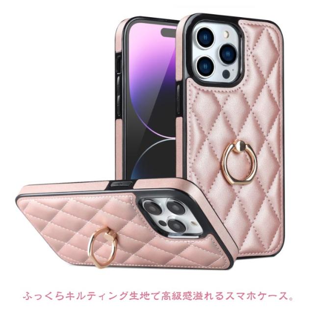 リング付き スマホリング キルティング スマホケース iPhone15 ケース iPhoneケース 衝撃保護 スマホカバー キルティング ケース スタンド付き iPhone15Pro iPhone15ProMax ケース iPhone14 ケース iPhone13 iPhone12 ケース 送料無料