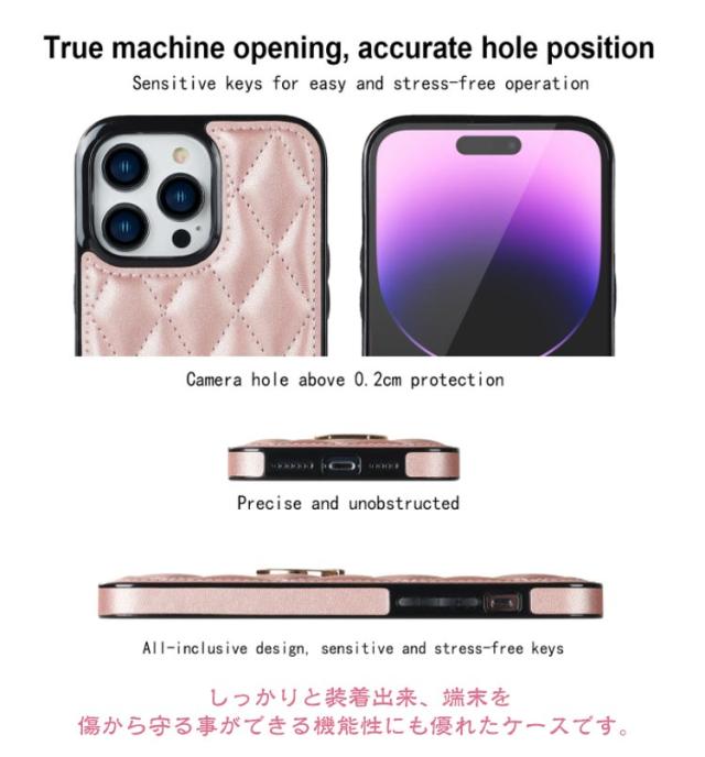 | 【対応機種】iPhone 【素材】PUレザー TPU 【セット内容】スマホケース(iPhone本体は同梱されておりません) 【特徴】 ふっくらキルティング生地で高級感溢れるスマホケース。 上品な質感のPUレザーを使用し、触り心地や耐久性も抜群。 しっかりと装着出来、端末を傷から守る事ができる機能性にも優れたケースです。 カバーをつけたままの充電も可能、カメラ撮影、音楽再生など各種機能ボタンにも簡単にアクセス可能です。 カメラレンズ周囲の穴に段差を設けることによって、iPhoneの突出したレンズを保護。 プレゼントにしたり、友達や恋人とリンクして持っても◎ | |