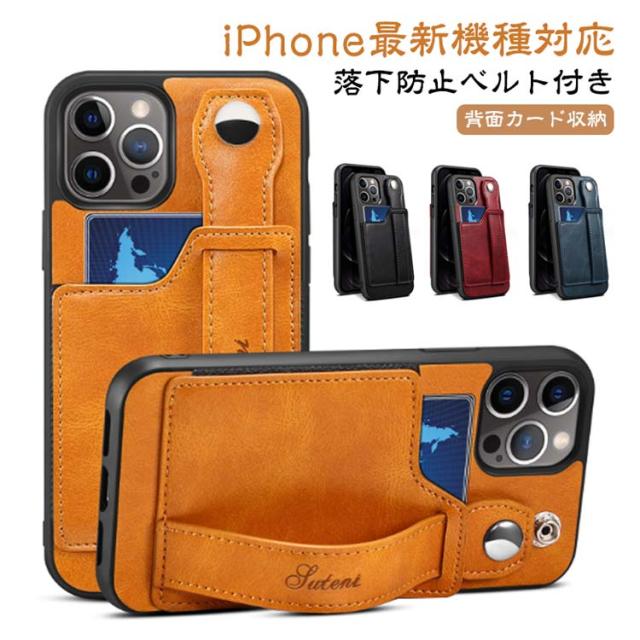 iPhone15 ケース 背面収納 ビジネス 落下防止 ベルト付き 背面ポケット ケース スマホケース バンド付き 背面 カード収納 カード入れ 背面 カードポケット iPhoneケース 送料無料