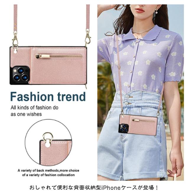 iPhone15 ケース 背面収納 ケース ミニ財布 小銭入れ スマホケース 財布型 スマホ ショルダー 肩掛け 斜め掛け ショルダー付き 背面 カード収納 背面 カードポケット iPhoneケース 送料無料