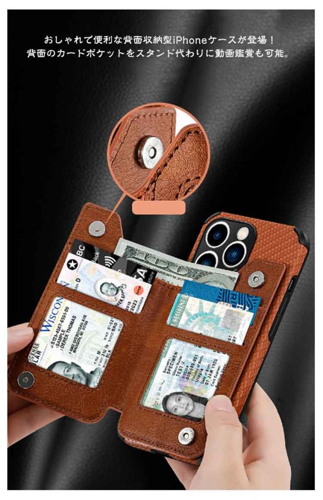 iPhone15 ケース 背面 カード収納 背面 手帳型 スマホケース スタンド機能 iPhoneケース 財布型 背面 カードポケット 手帳型ケース カード入れ 背面収納 スマホカバー 耐衝撃 送料無料