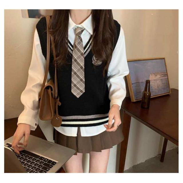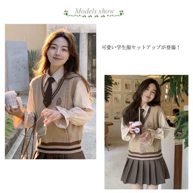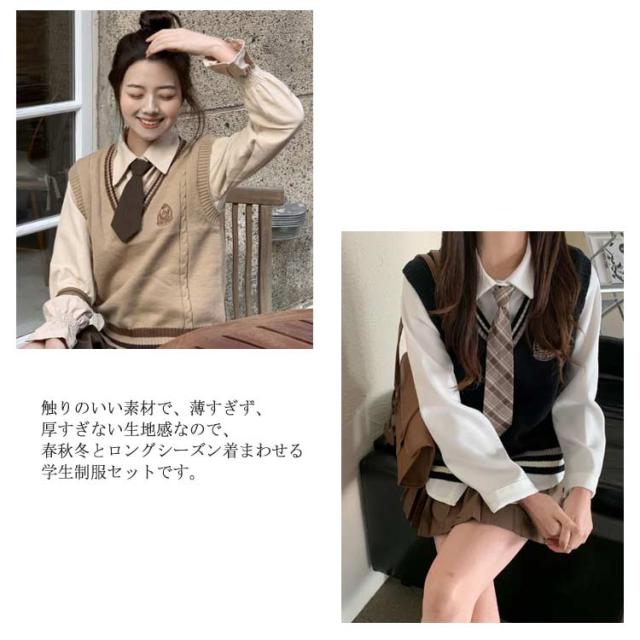 制服 コスプレ 高校 セット 3点セット セットアップ ニットベスト 学生服 おしゃれ 高校生 女の子 上下セット シャツ JK制服 女子高校生 プリーツスカート ライン入り スクール制服 女子高校生 中学生 学生服 韓国 仮装 スーツ S M L XL