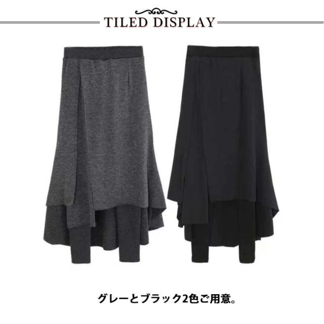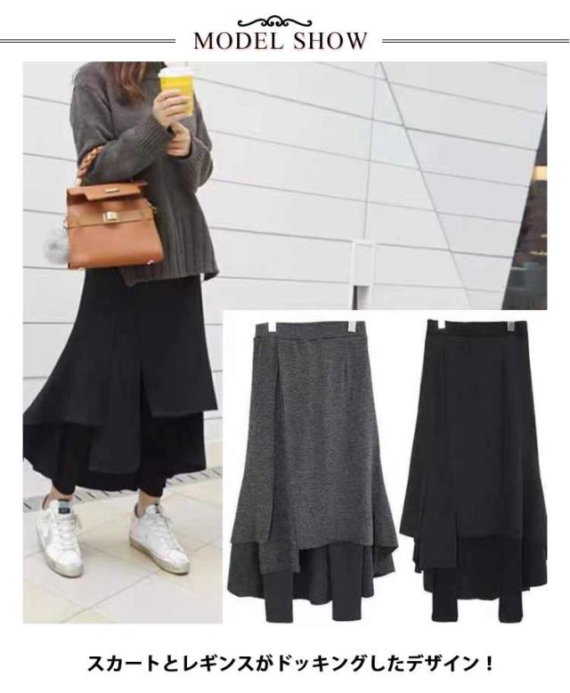 レギンス付きスカート 裏起毛 スカートレギンス タイトスカート レディース レギンス付き スパッツ ロング丈 フレアスカート ウエストゴム 体型カバー 重ね着風 カジュアル 冷え対策 防寒 カジュアル おしゃれ きれいめ 秋 冬