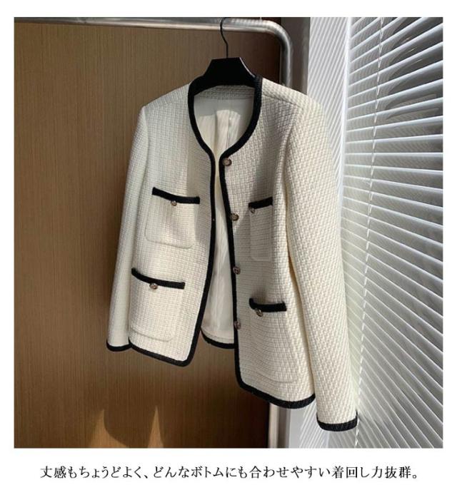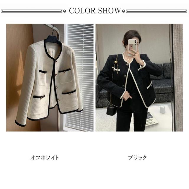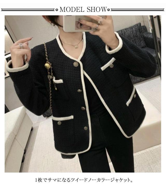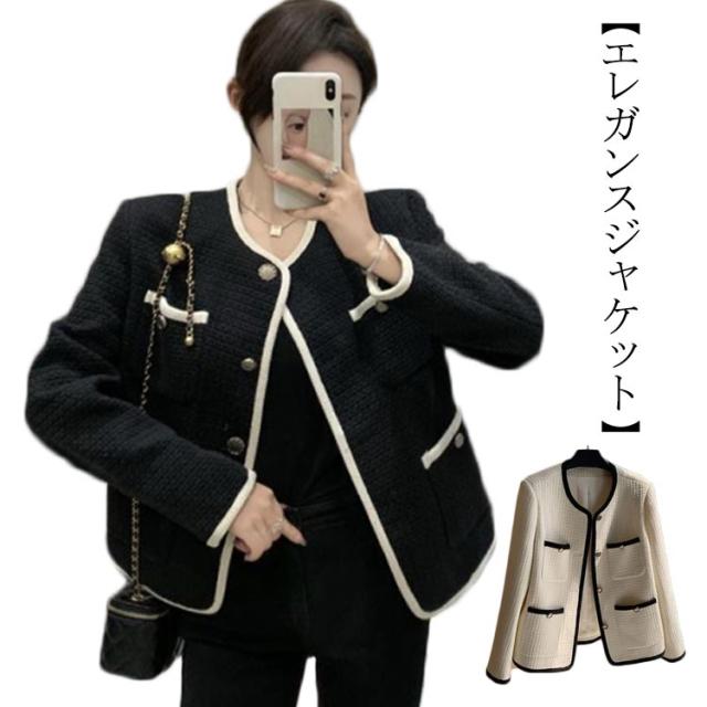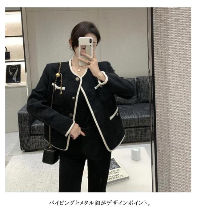 ツイード ジャケット ノーカラー レディース 長袖 ツイードジャケット アウター コート スーツジャケット 羽織 カーディガン カジュアル 卒業式 入学式 結婚式 オフィス 通勤 春 秋 冬 きれいめ 上品 華やか エレガント 送料無料