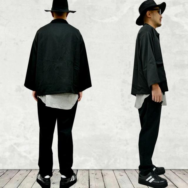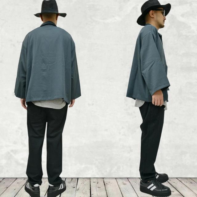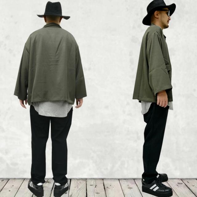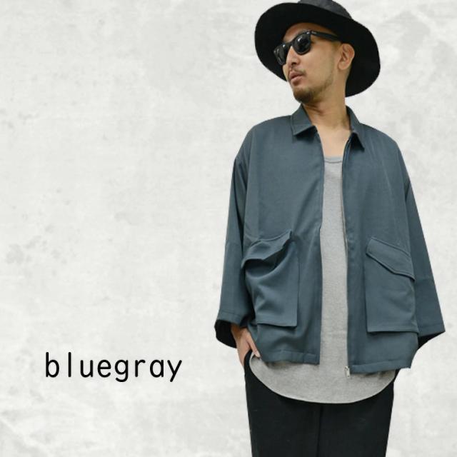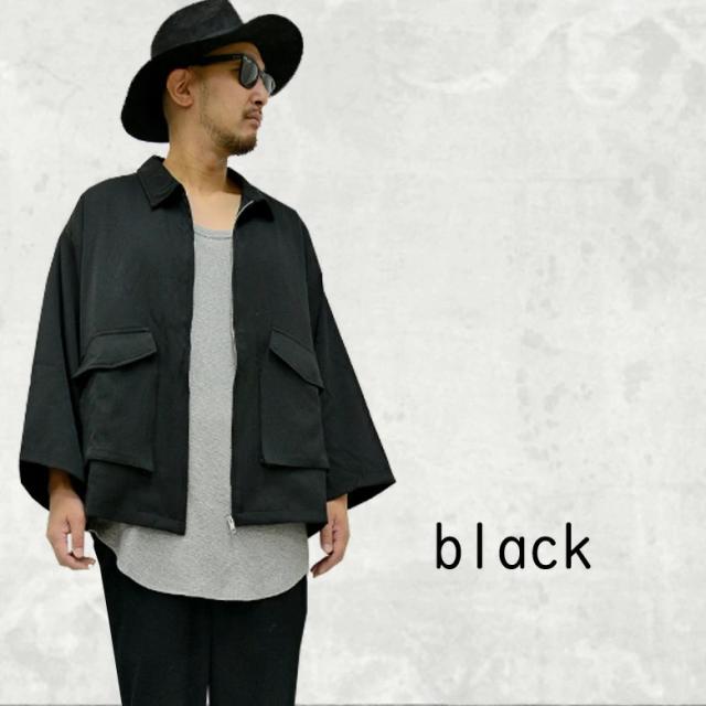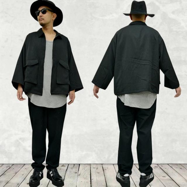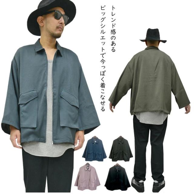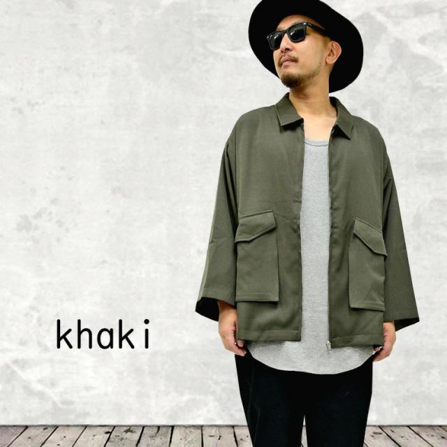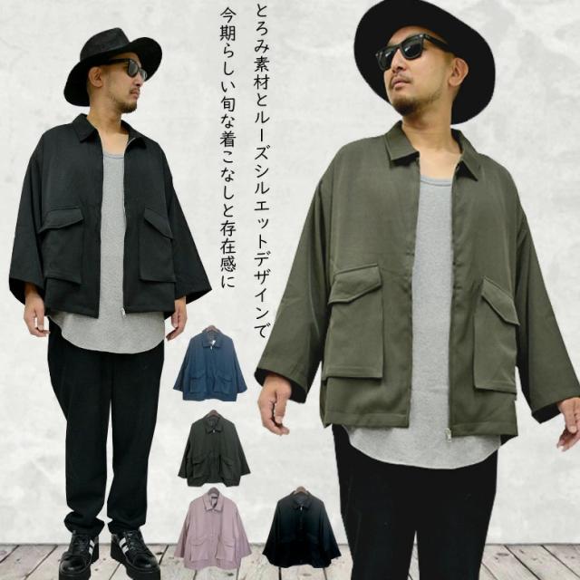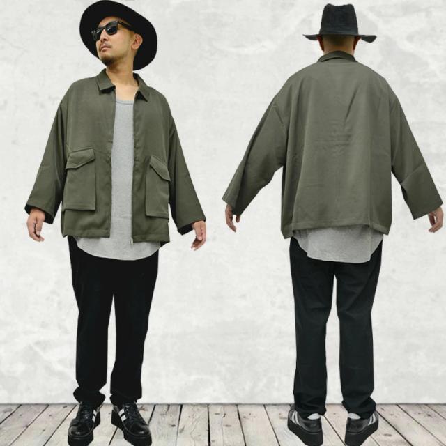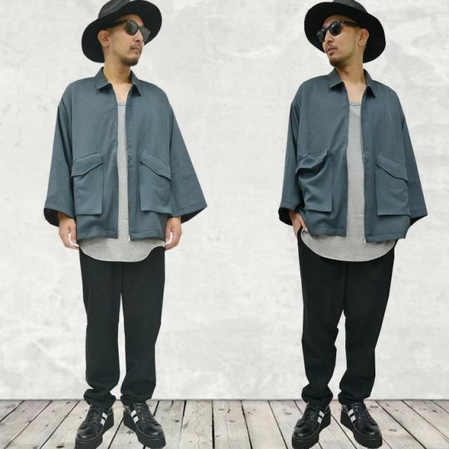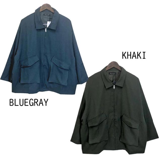 【閉店セール】とろみ素材 ビッグシルエットBIG フラップポケットジップアップ スウィングトップ rv8414 ブルゾン ジャケット アウター ドルマン オーバーサイズ トレンド ブルーグレー カーキ アズキ ブラック メンズ 韓国