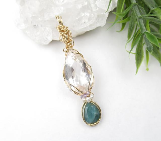 2.27ct グランディディエライト& クォーツ 14KGF ペンダント 愛と信頼の強い絆と幸運、リーダーシップとハートの石 P1gura012