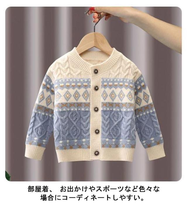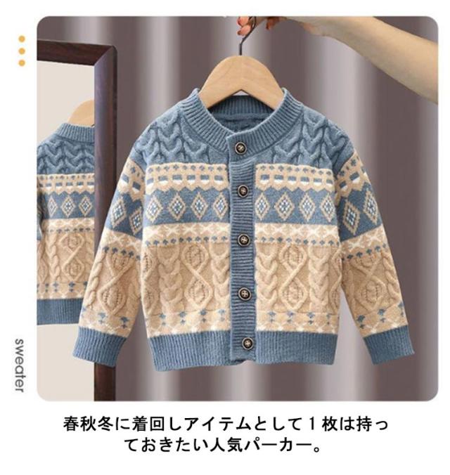 | おしゃれな模様柄男の子ニットカーディガンです。 部屋着、お出かけやスポーツなど色々な場合にコーディネートしやすい。 高品質なニット素材を採用して、柔らかくて触り心地も良かった、耐久性も抜群で、長持ちできます。 春秋冬に着回しアイテムとして1枚は持っておきたい人気パーカー。 | |