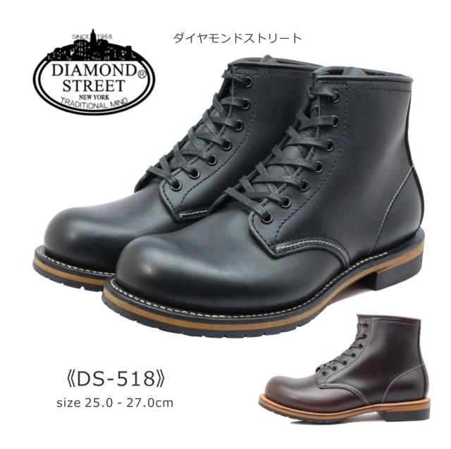| DIAMOND STREET ダイヤモンドストリート メンズ ブーツ DS 518 プレーントゥ ショート レザー 靴 黒 ブラック ダークブラウン |