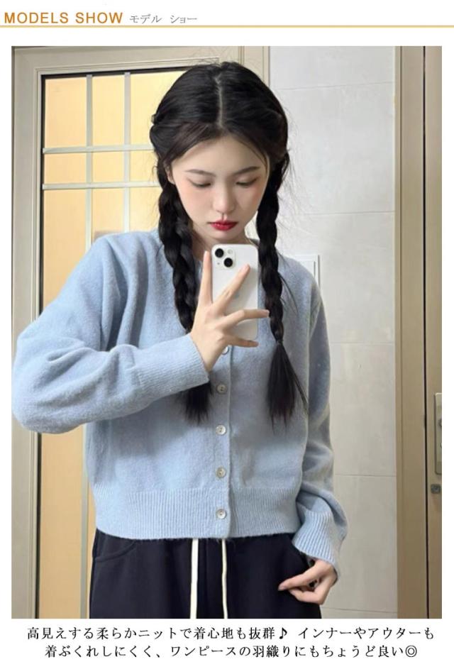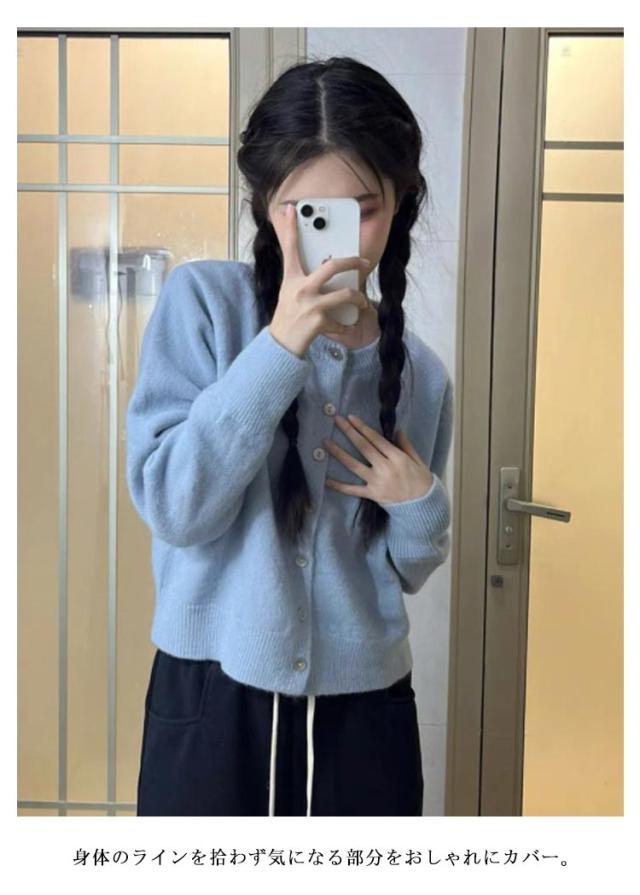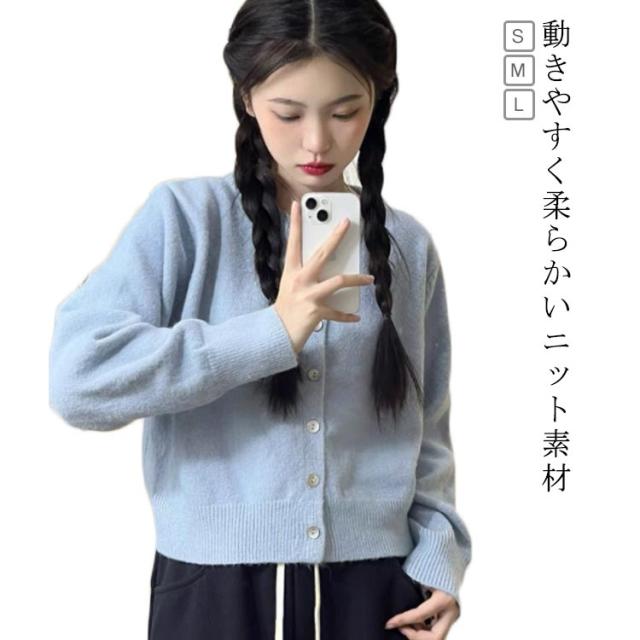 カーディガン ニット 秋冬 ニットカーディガン レディース トップス 長袖 ショートカーディガン ふわふわ アウター セーター クルーネック 柔らかい 春 秋 冬 ショート丈 カジュアル シンプル オシャレ 重ね着 通学 無地 可愛い 羽織り