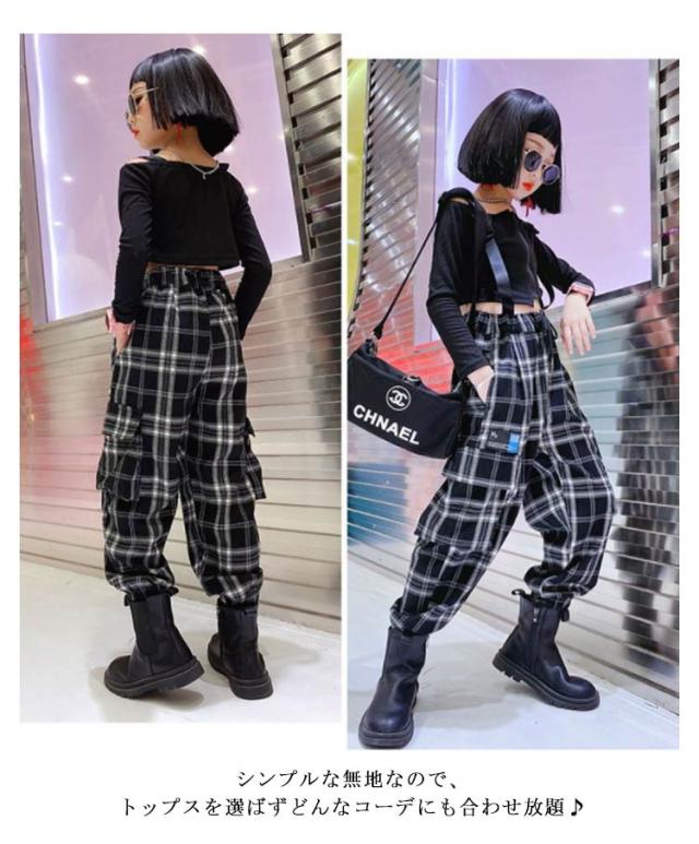 子供服 カーゴパンツ イージーパンツ 女の子 キッズ 薄手 裏起毛 チェック柄 サルエルパンツ ウェストゴム ワイドパンツ ストリート系 ダンス 衣装 ロングパンツ パンツ ズボン 通学 無地 ミリタリー ジュニア 韓国 カジュアル 110 120 130 140 150 160 170 送料無料