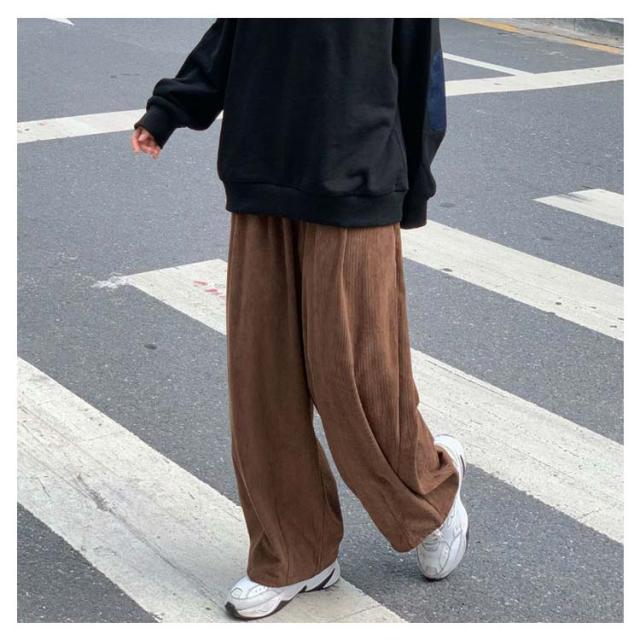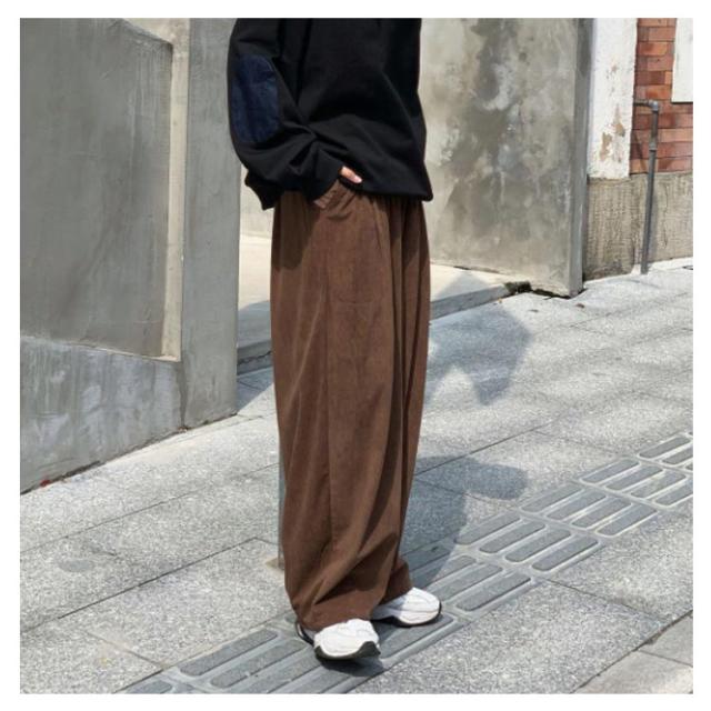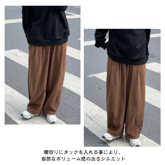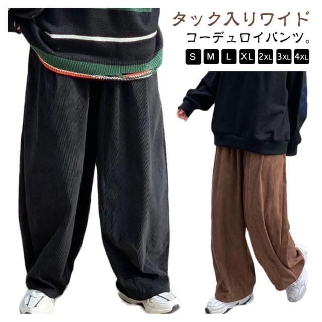 コーデュロイ ワイドパンツ メンズ コーデュロイパンツ ストレートパンツ ワイド イージーパンツ 裏起毛 厚手 秋冬 ズボン 暖かい 防寒 保温 カジュアルパンツ タック入り 大きいサイズ 大人 カジュアル ストリート 韓国 ブラック 茶色 【送無】