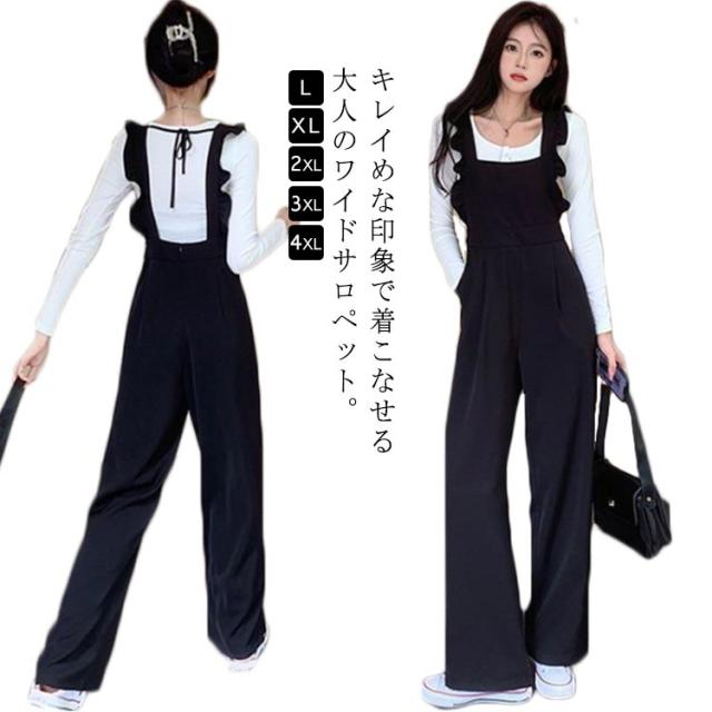 サロペット パンツ レディース フリル 秋 夏 オールインワン サロペットパンツ ワイドパンツ 春秋 きれいめ 着痩せ 大きいサイズ カジュアル 春 ゆったり 体型カバー 着痩せ OL