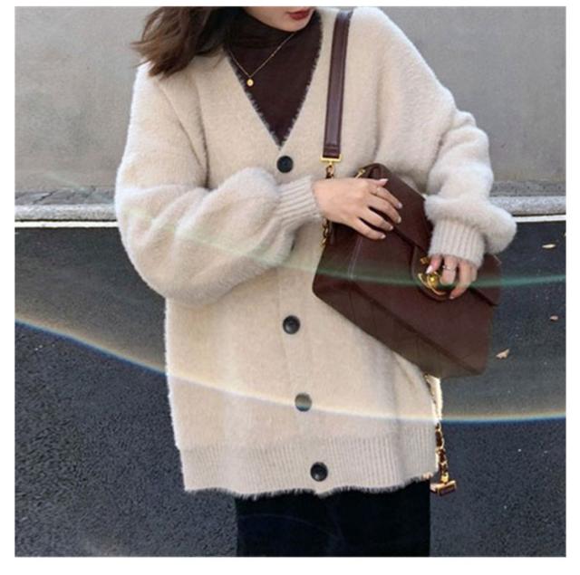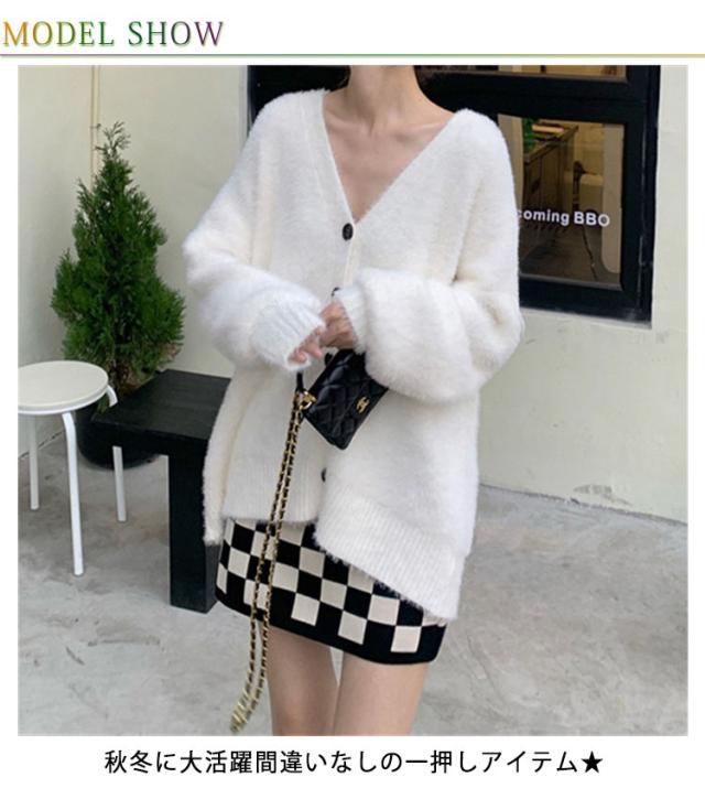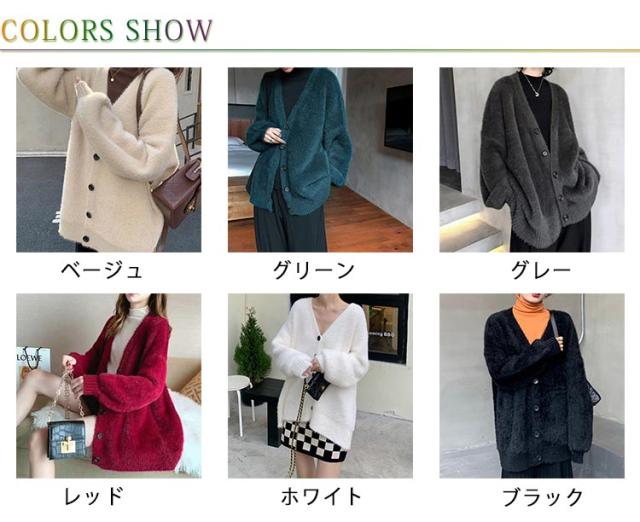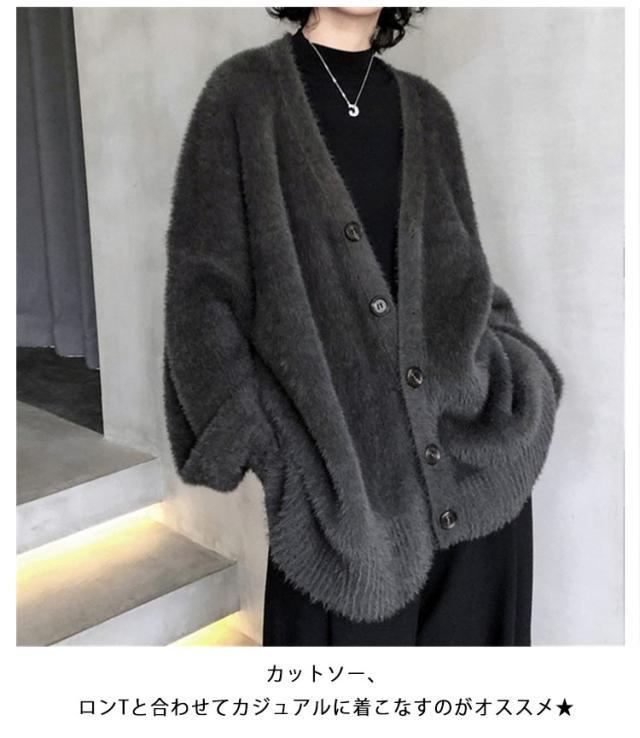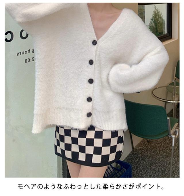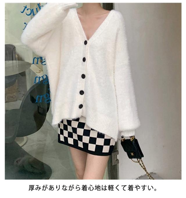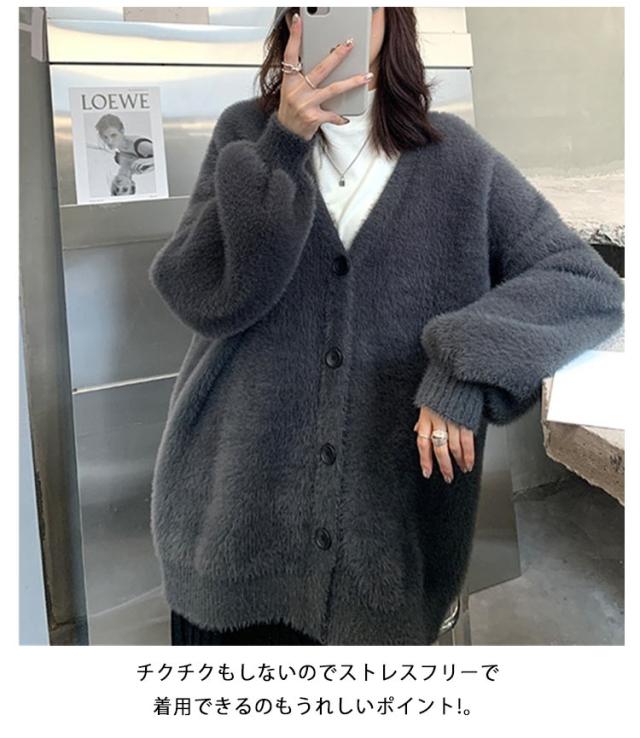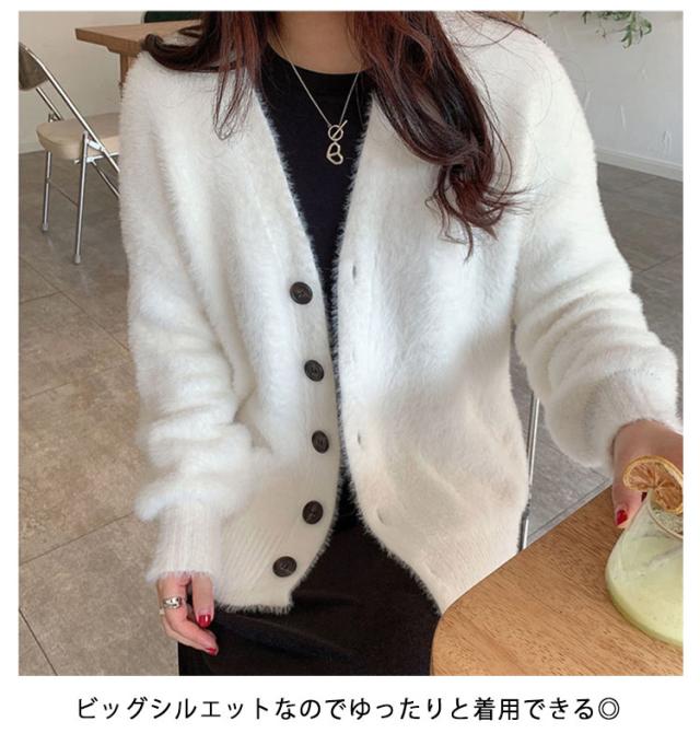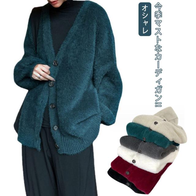 カーディガン レディース モヘアタッチ トップス 長袖 もこもこ 秋冬 アウター 厚手 ニットカーディガン Vネック しっとりなめらか あったか ゆったり 体型カバー オシャレ 通勤 通常着