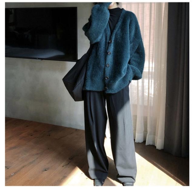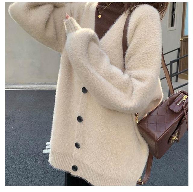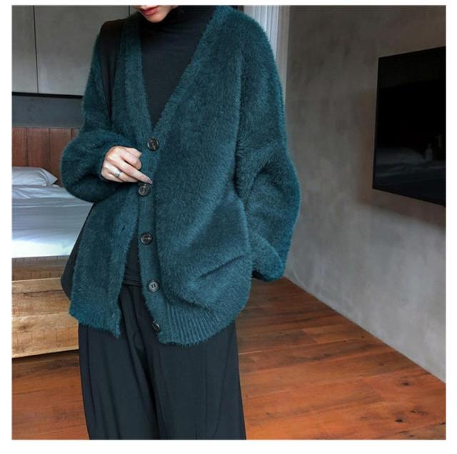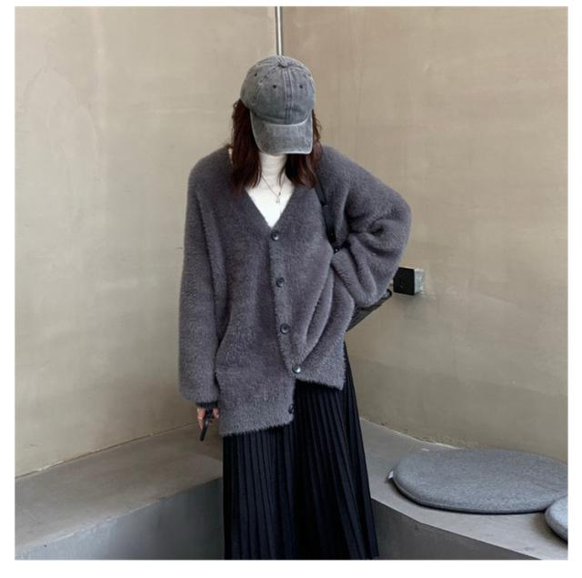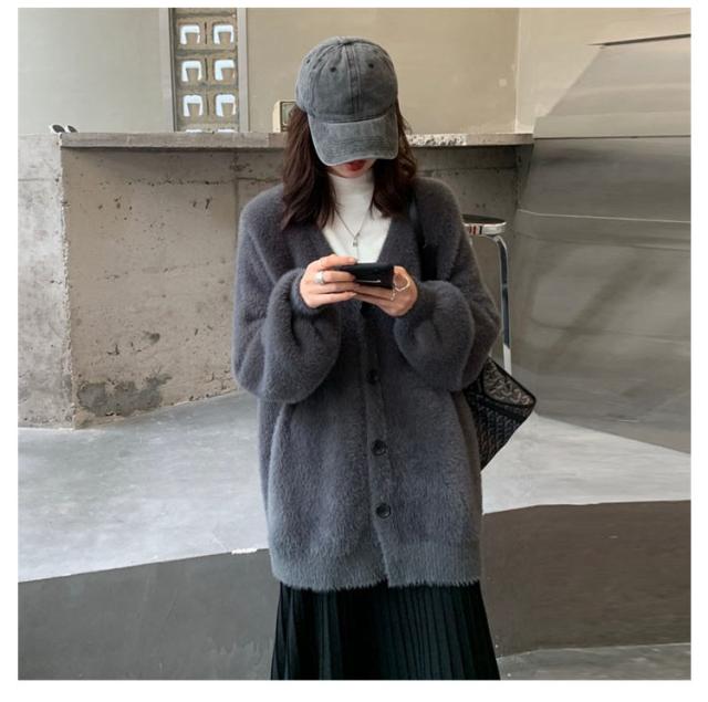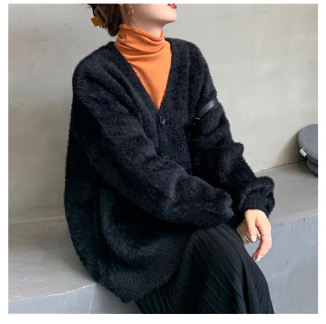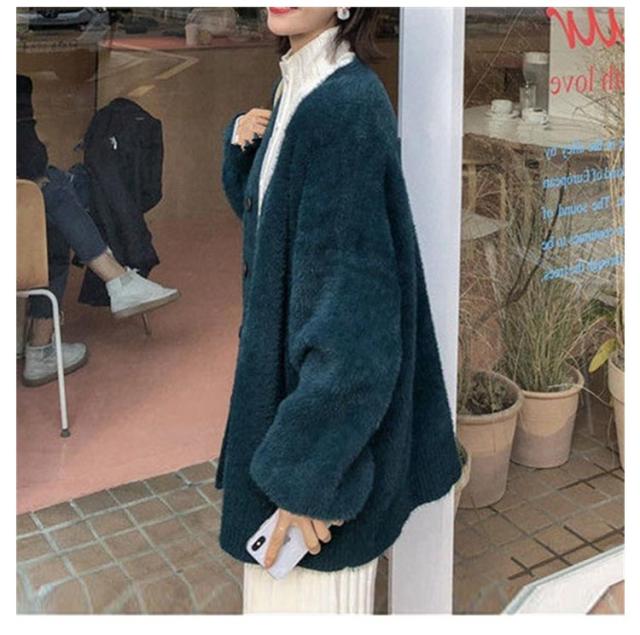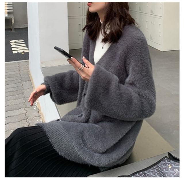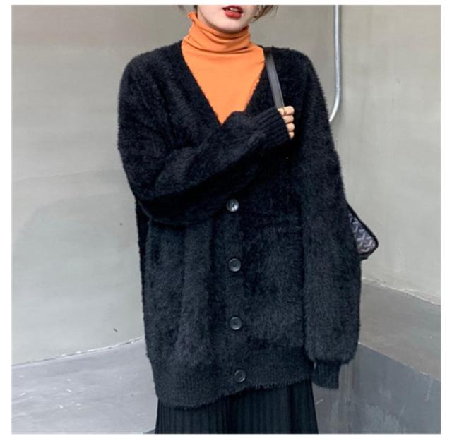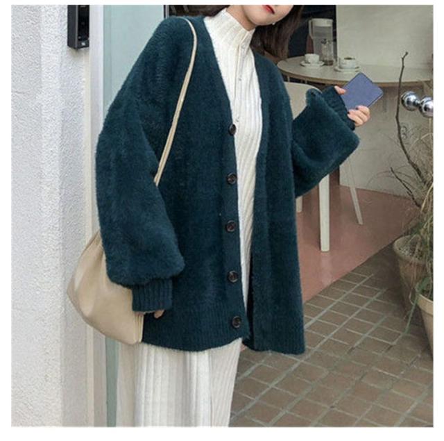 カーディガン レディース モヘアタッチ トップス 長袖 もこもこ 秋冬 アウター 厚手 ニットカーディガン Vネック しっとりなめらか あったか ゆったり 体型カバー オシャレ 通勤 通常着