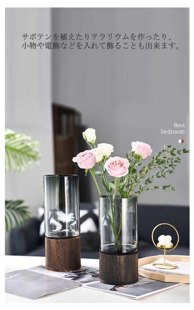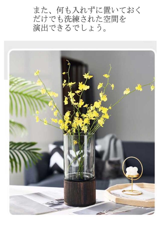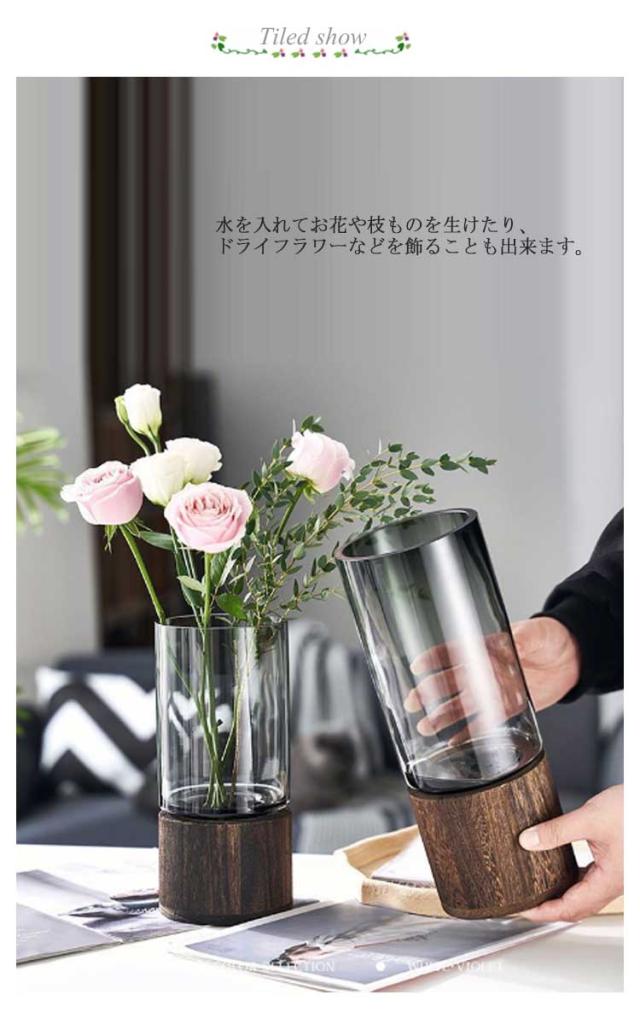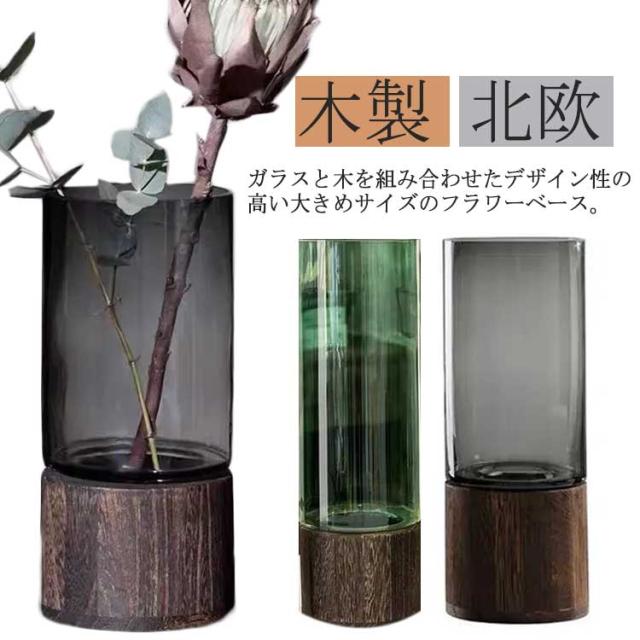 花瓶 おしゃれ フラワーベース 大きい ガラス 木製 円柱 花びん 北欧 丸 ガラスボトル 生花 ドライフラワー 卓上 シンプル ガラス花瓶 インテリア 花器 プレゼント