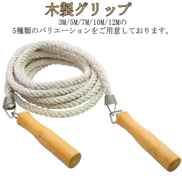 3M 5M 7M 10M 12M 長縄跳び 大縄跳び 大繩 なわとび 団体 スポーツ 競技 練習用 木柄 運動会 大人用 子供用 木製グリップ ダイエット 体育祭 学級活動 クラブ活動 体力作り
