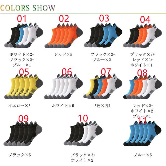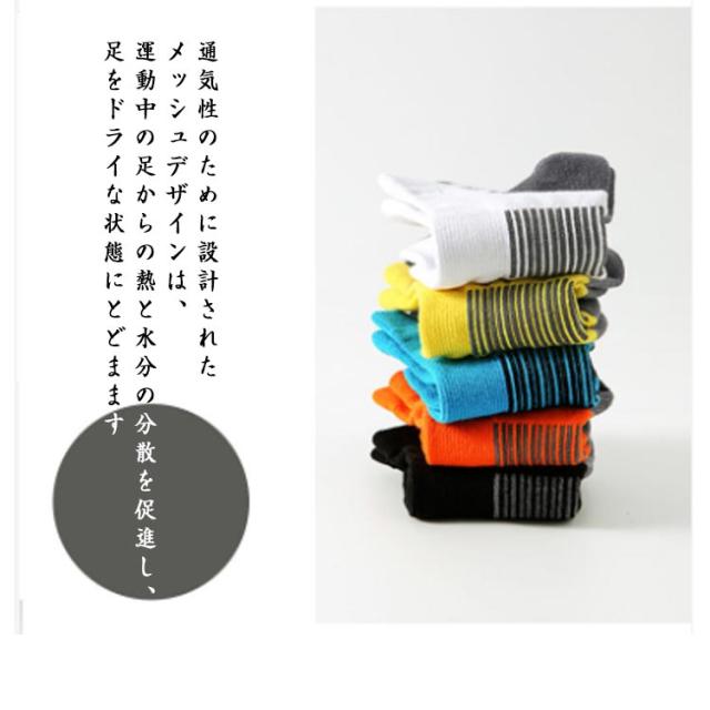 | 運動や普段使いに最適なソックス5足セット! 高質な綿素材で肌にやさしく、快適な履き心地です。 通気性のために設計されたメッシュデザインは、運動中の足からの熱と水分の分散を促進し、足をドライな状態にとどまます アーチサポートを行うことで、様々な足のトラブルから守ります。 足首にフィットするデザインなので、激しいスポーツにもおすすめ! フィットネス・トレーニング、登山、バスケットボール、ジョギング、ランニングなどのスポーツから日常生活でも使用可能です。 | |