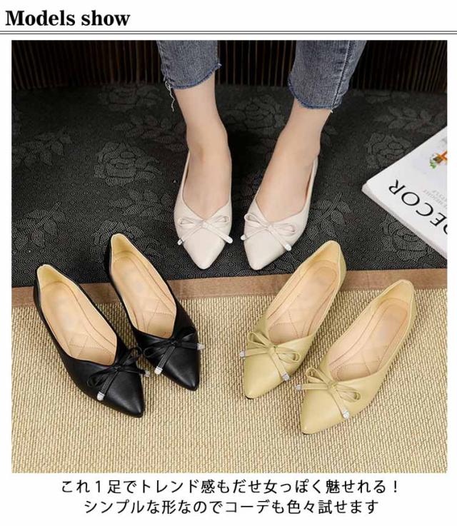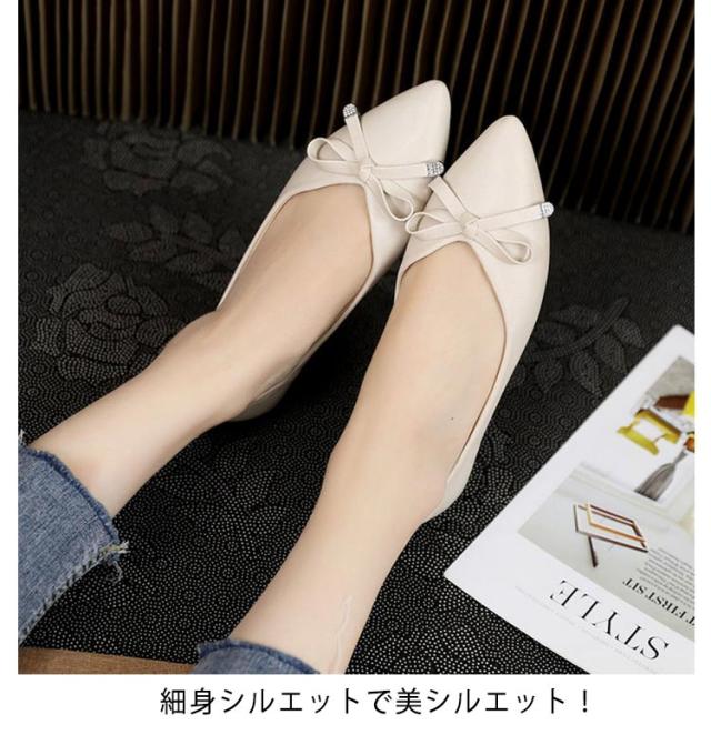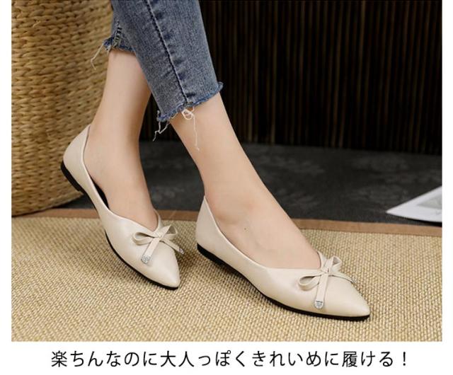 パンプス フラットシューズ レディース シューズ ポインテッドトゥ リボンバレエシューズ バレエシューズ ぺたんこ 疲れない フルソール 歩きやすい フラット フラットシューズ リボン 秋 春秋 靴 綺麗め 送料無料