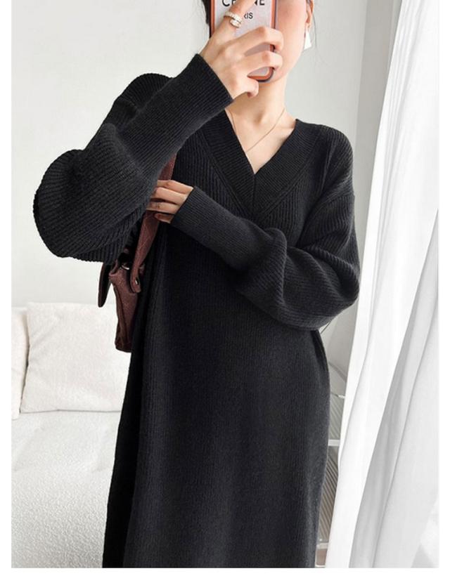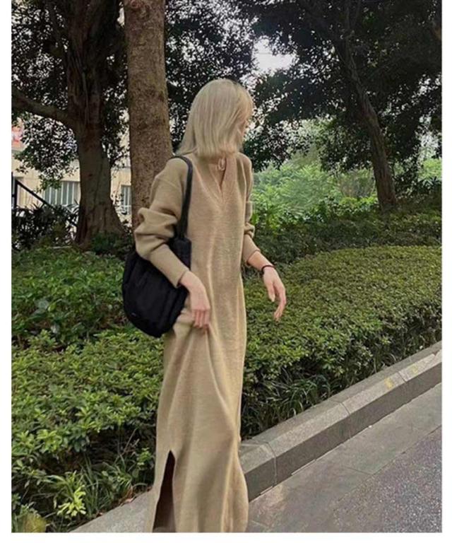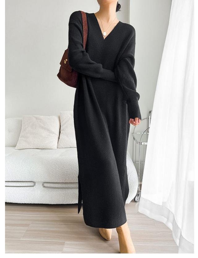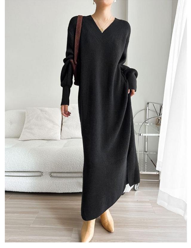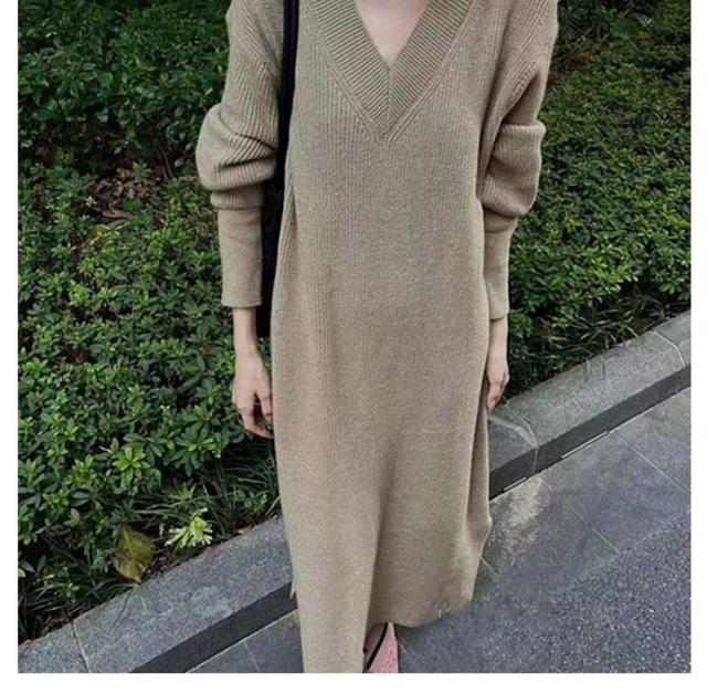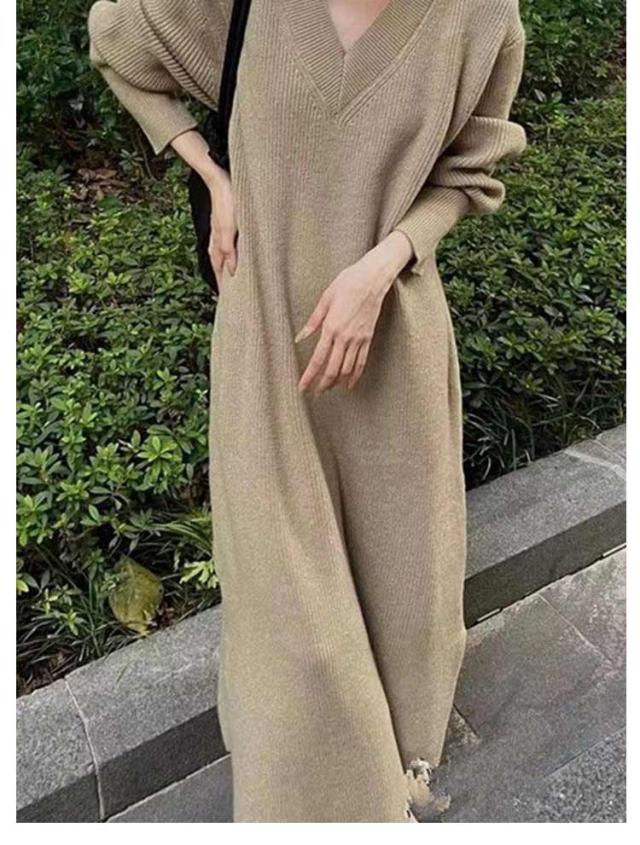 ワンピース レディース Vネック 長袖 リブ ニットワンピース ロングワンピース ロング丈 マキシ丈 秋 冬 ロング ワンピ ロングワンピ マキシ マキシワンピース 無地 ストレート レイヤード ドロップショルダー 体型カバー 大きいサイズ マタニティ 切り替え 送料無料