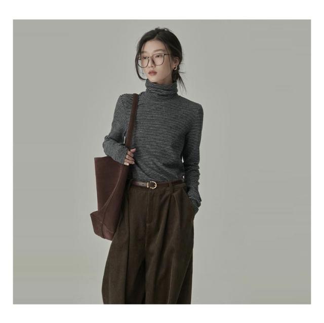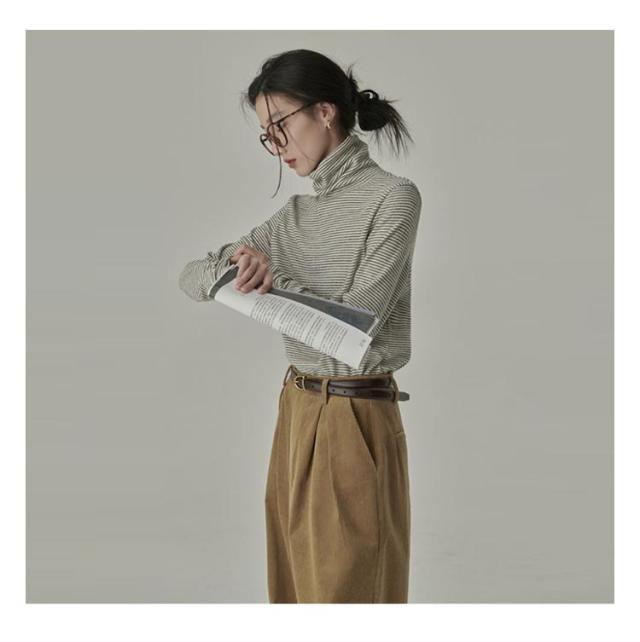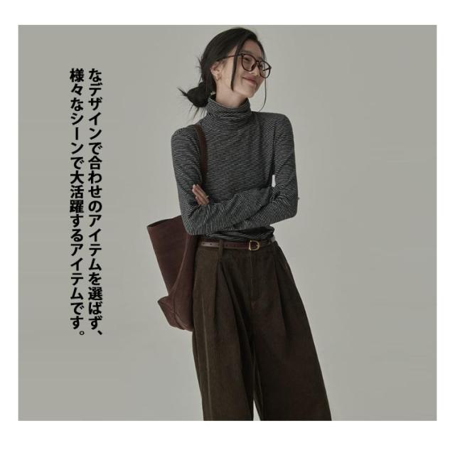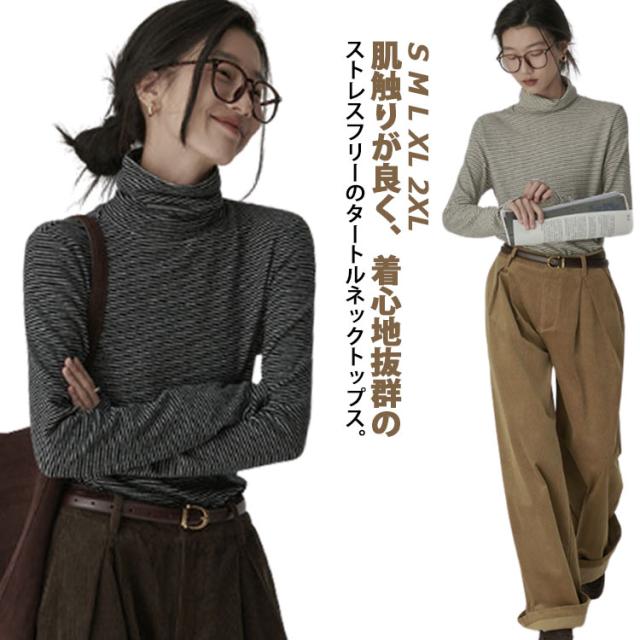 冬tシャツ タートルネック ハイネック カットソー レディース ストライプ柄 長袖 大きいサイズ ルームウェア インナー 薄手 トップス 重ね着 レイヤード ロンT おしゃれ かわいい 春 夏 秋 送料無料