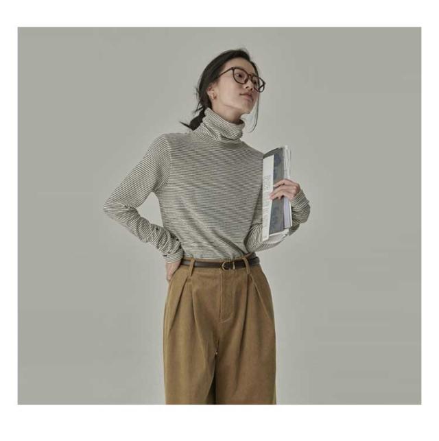 | 肌触りが良く、着心地抜群のストレスフリーのタートルネックトップス。 なデザインで合わせのアイテムを選ばず、様々なシーンで大活躍するアイテムです。 重ね着してもごわつかない、薄手仕様です。 肌寒い季節のインナーとしての活躍はもちろん、春にはレイヤードスタイルをお楽しみいただけます。 | |