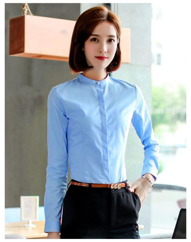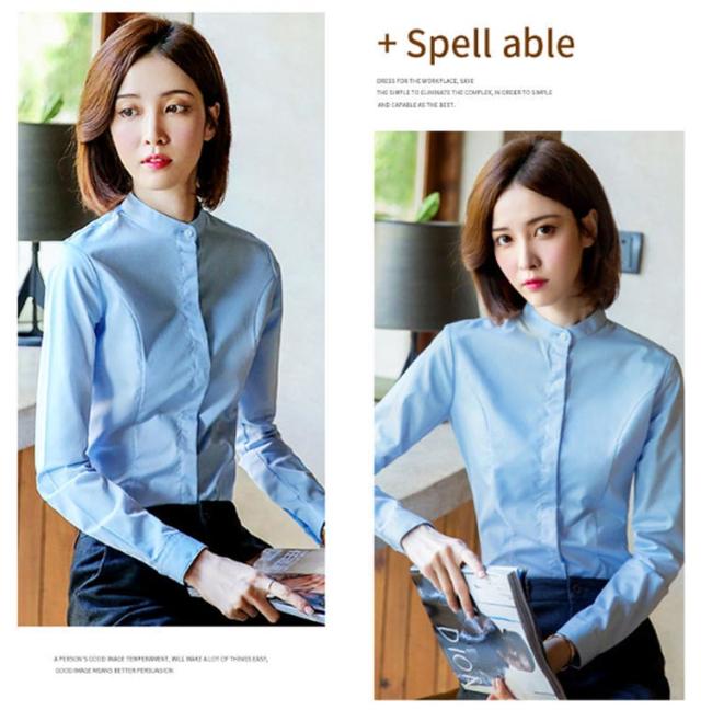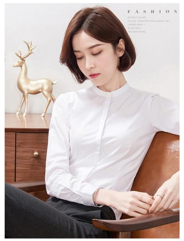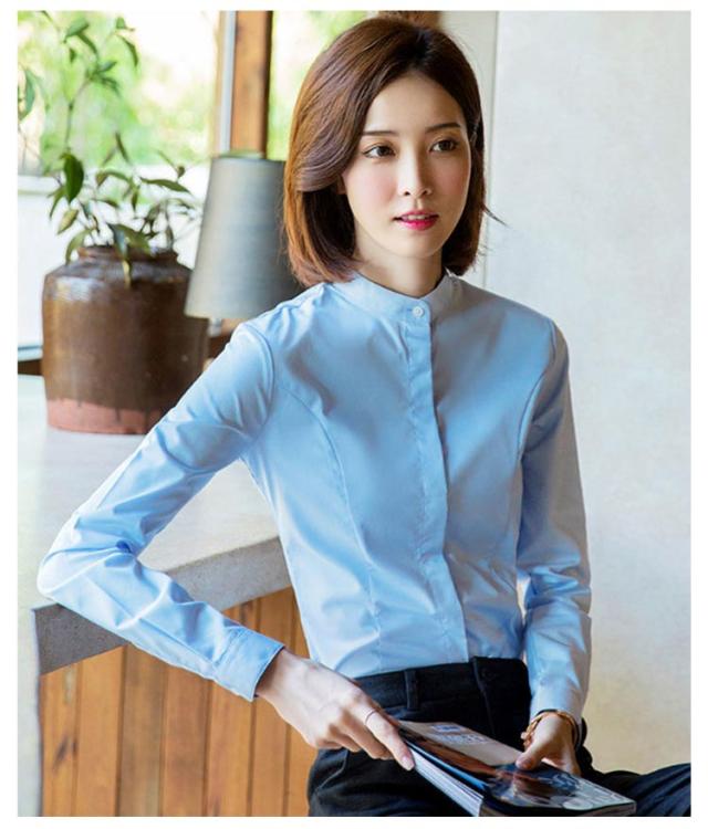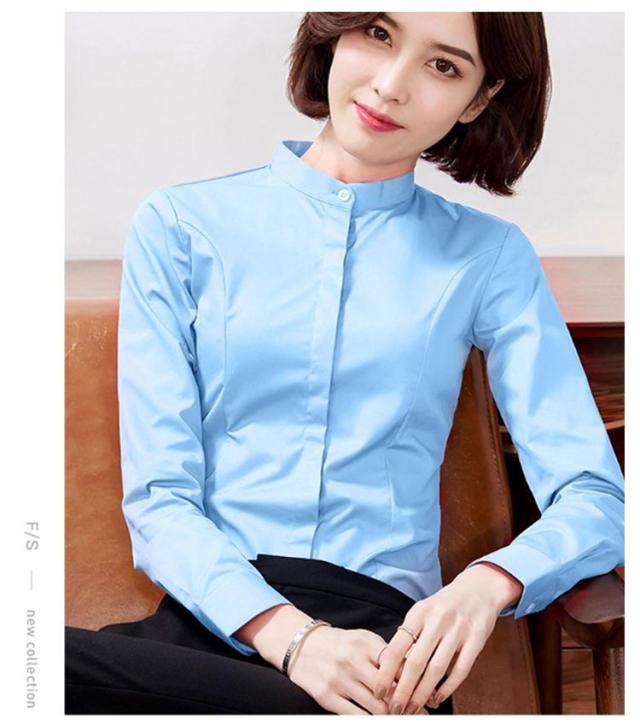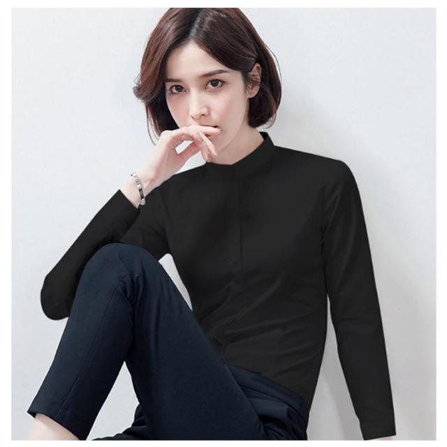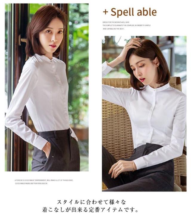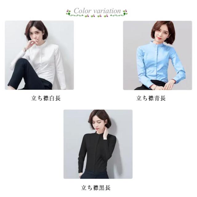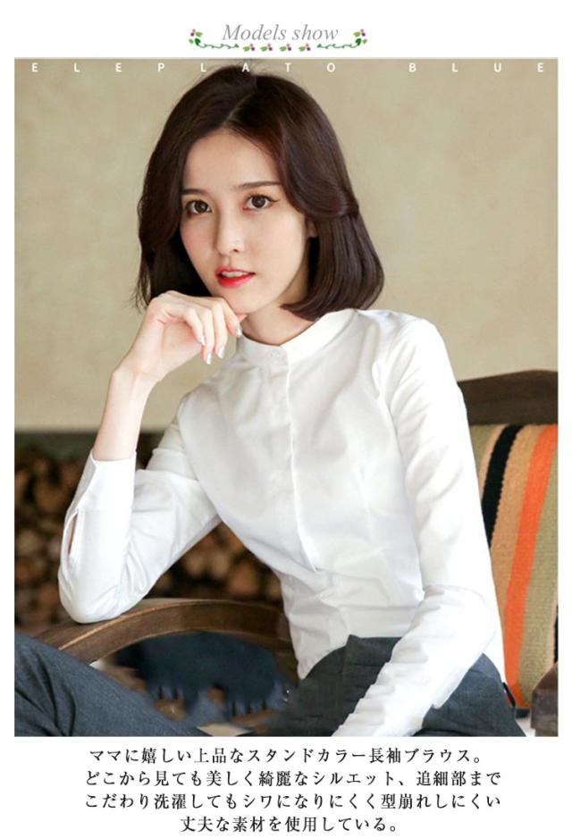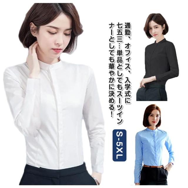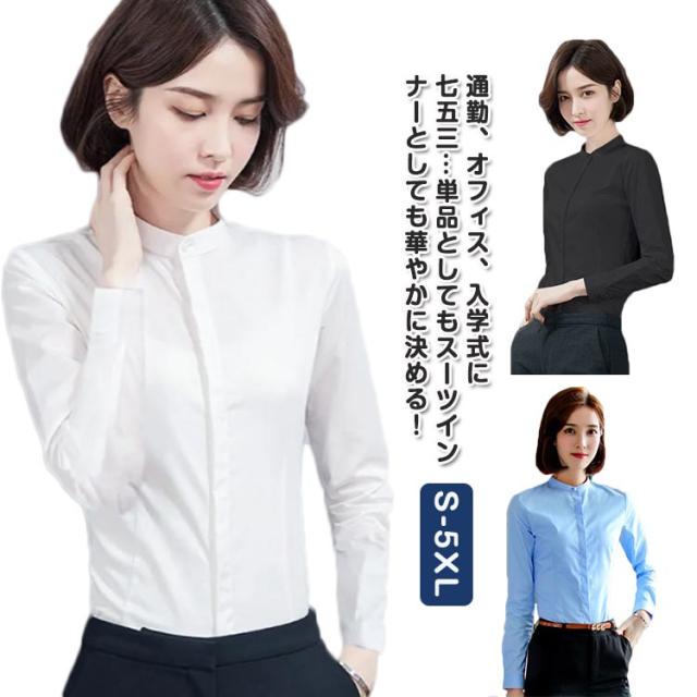 シャツ レディース 長袖 おしゃれ スタンドカラー ブラウス トップス ワイシャツ フォーマルシャツ 立ち襟 大きサイズ ビジネス フォーマル 面接 就職 通勤 仕事着 シンプル 無地 春 秋 冬 S M L XL 2XL 3XL 4XL 5XL