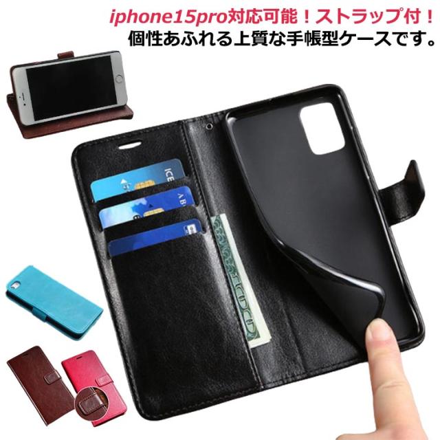 iPhone15 ケース iPhoneケース 手帳型 PUレザー スマホケース 手帳型 財布型 iPhone15 アイフォン15 手帳型 ストラップ付き 携帯ケース 着脱しやすい カード収納 スタンド機能付き 全面保護 衝撃吸収 送料無料 あいほん 15 ケース
