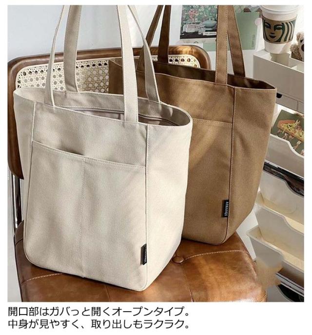 トートバッグ キャンバス キャンバストート ポケット付き(アクセサリーなし) 無地 トートバッグ レディース a4 通勤 大きめ 縦 キャンバス 軽量 大容量 ファスナー付き 折りたたみ 肩掛け 帆布 マザーズバッグ 送料無料 トート シンプル 女子 母の日 プレゼント