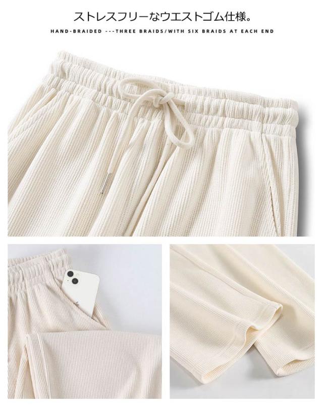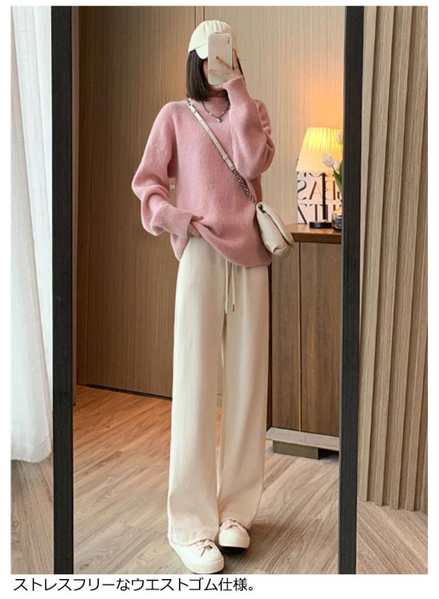 裏起毛パンツ ストレートパンツ レディース ロングパンツ ポケットあり リブパンツ ワイドパンツ コーデュロイ 低身長 高身長 ウェストゴム イージーパンツ ボトムス 大きいサイズ 厚手 暖かい 秋 冬