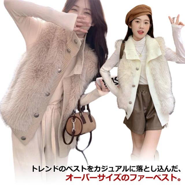 | トレンドのベストをカジュアルに落とし込んだ、オーバーサイズのファーベスト リブ付きできれいめカジュアル裾がリブ仕様になっていることで、ファーでもカジュアルな仕様になっています。 全体的にオーバーサイズ&アームホールがゆったりしているので、着心地が快適なうえすっきりシルエットのスタイルのアクセントになります。 レ風のバックベルトがかぶらないバックにはレザーベルト装飾が施されており、後ろから見るとジレ風な印象を与えます。 | |