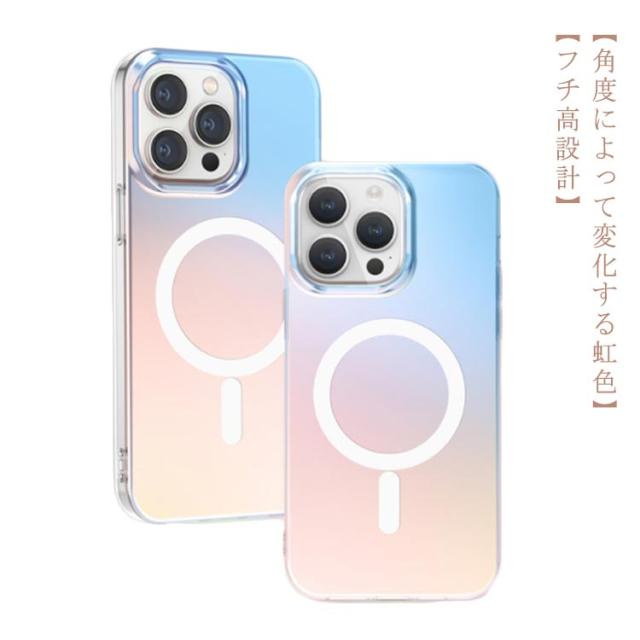 角度によって変化する虹色 かわいいケース iphone15 ケース magsafe iphone15 plus ケース クリア iphone15 pro ケース iphone15 promax ケース グラデーション マグセーフ ソフト ハード 二層構造 衝撃吸収 PC TPU オーロラ アイホン 磁石 マグネット iphone 14 ケース