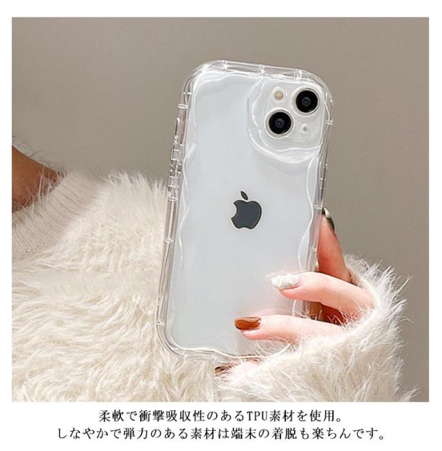 クリア iPhoneケース うねうね なみなみ iphone15 plus iphone15pro max iphone15 韓国 シリコン 耐衝撃 かわいい スマホケース ウェーブ クリアケース 透明 可愛い おしゃれ SNS 大人かわいい 女子