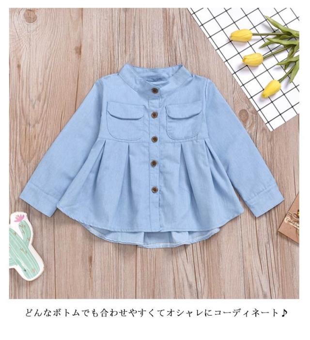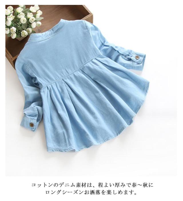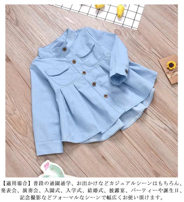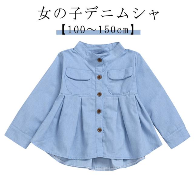 キッズ デニム シャツ コットン トップス ブラウス デニムシャツ 長袖 ジュニア 女の子 子供服 100 110 120 130 140 150cm ガールズ カジュアル ナチュラル フォーマル おすすめ 可愛い おしゃれ こども 七五三 入学式 誕生日 入園式 綿 送料無料