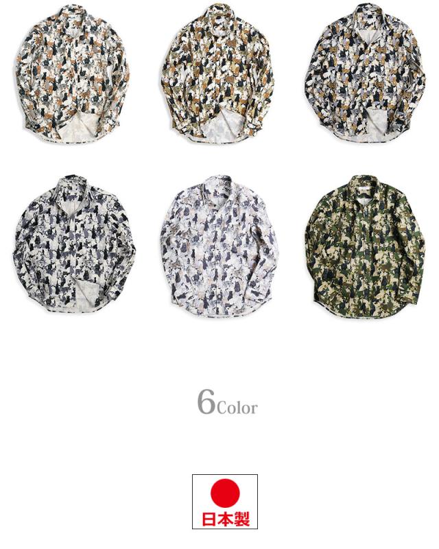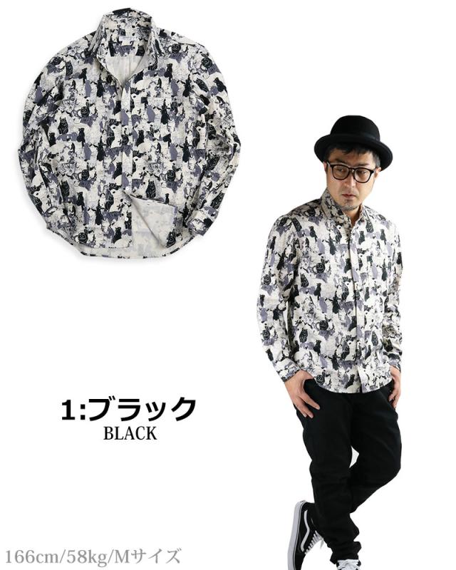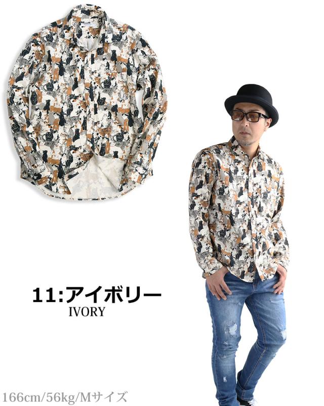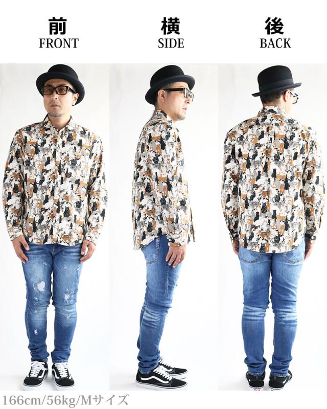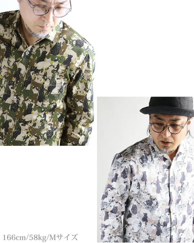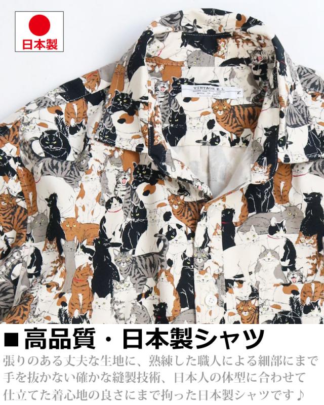 VINTAGE EL 長袖シャツ メンズ 猫柄シャツ 日本製 ねこ ネコ アニマル キャット 日本製 国産