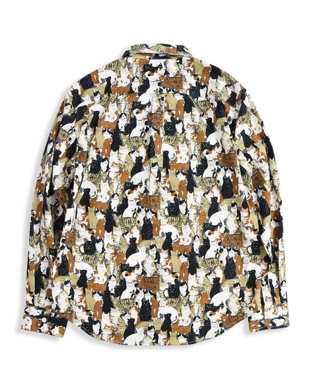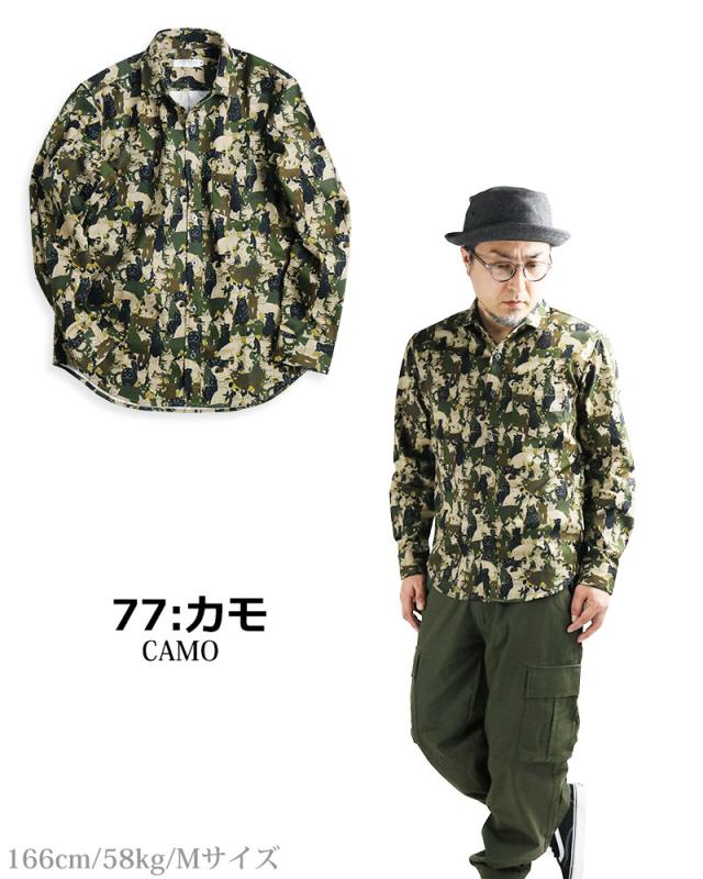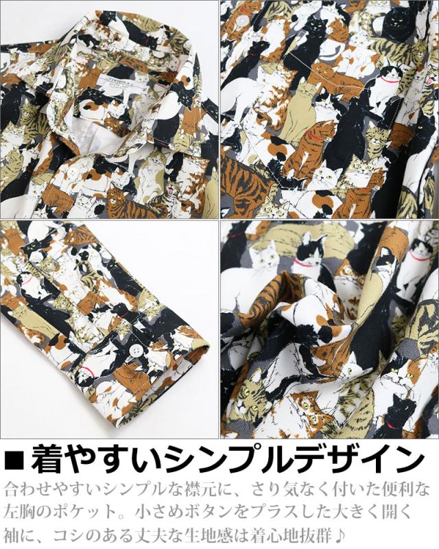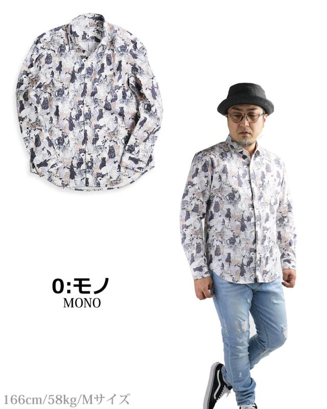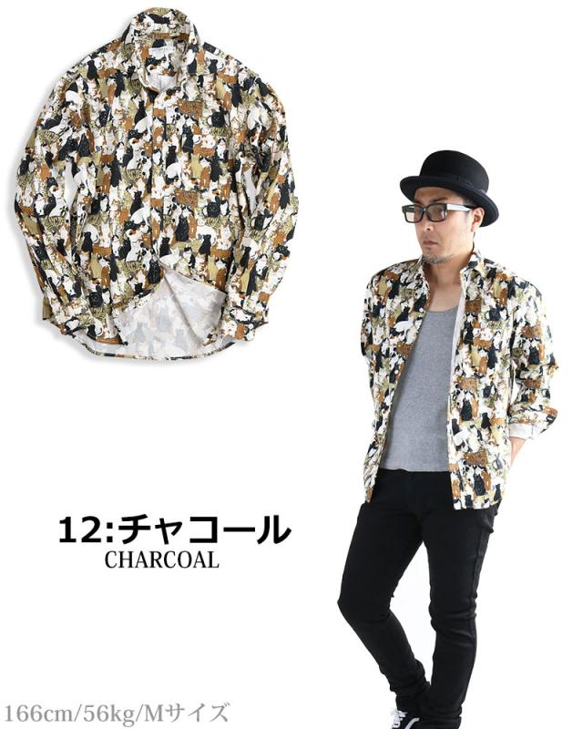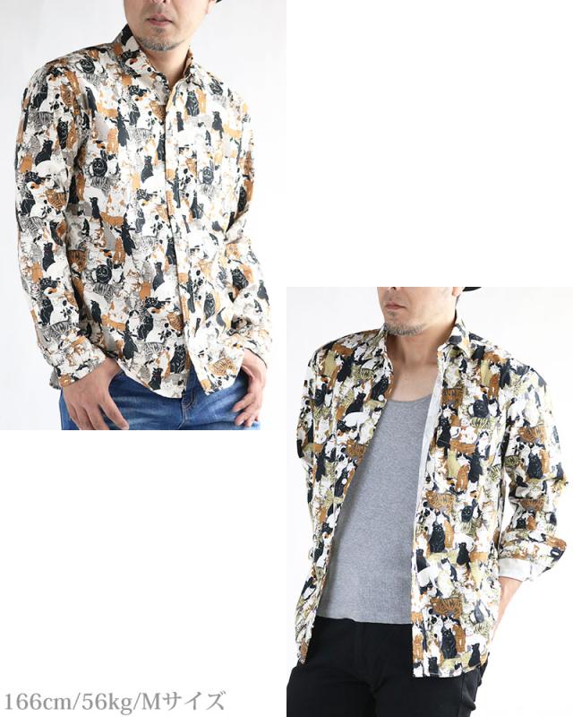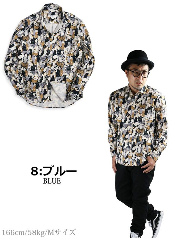 VINTAGE EL 長袖シャツ メンズ 猫柄シャツ 日本製 ねこ ネコ アニマル キャット 日本製 国産