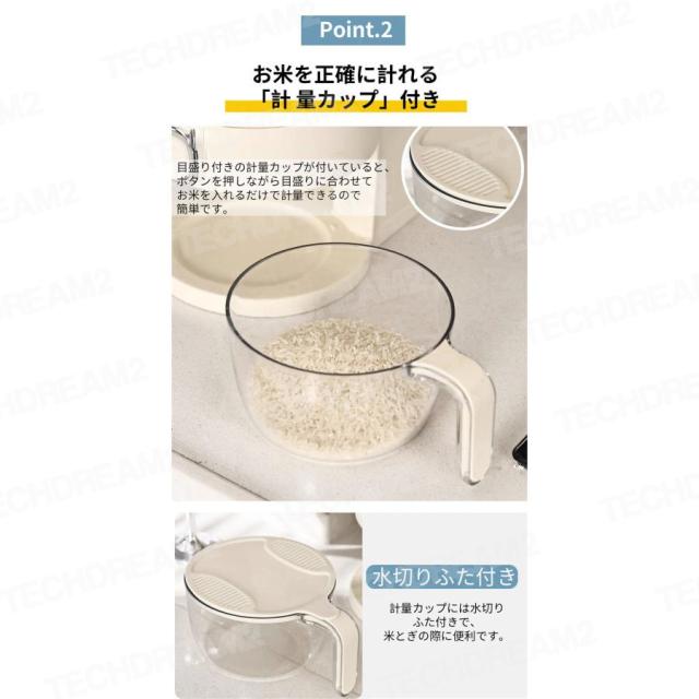 「計量カップ付き」水切りフタ付きで洗米も簡単です。