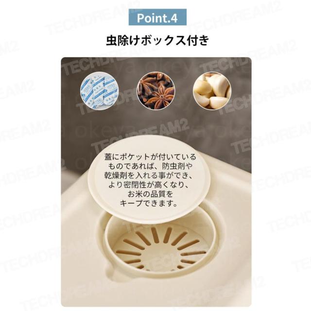 「虫除けボックス付き」スターアニス、脱酸素剤、ニンニクなどを入れて、湿気や害虫から保護します。