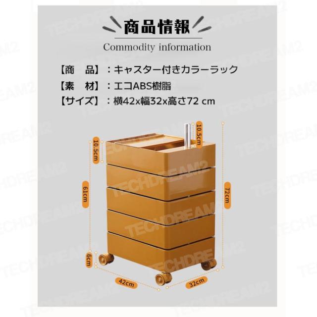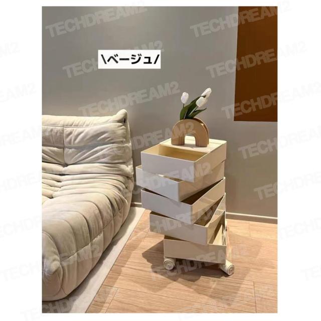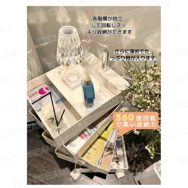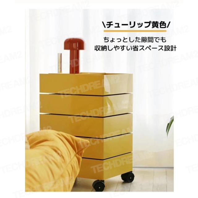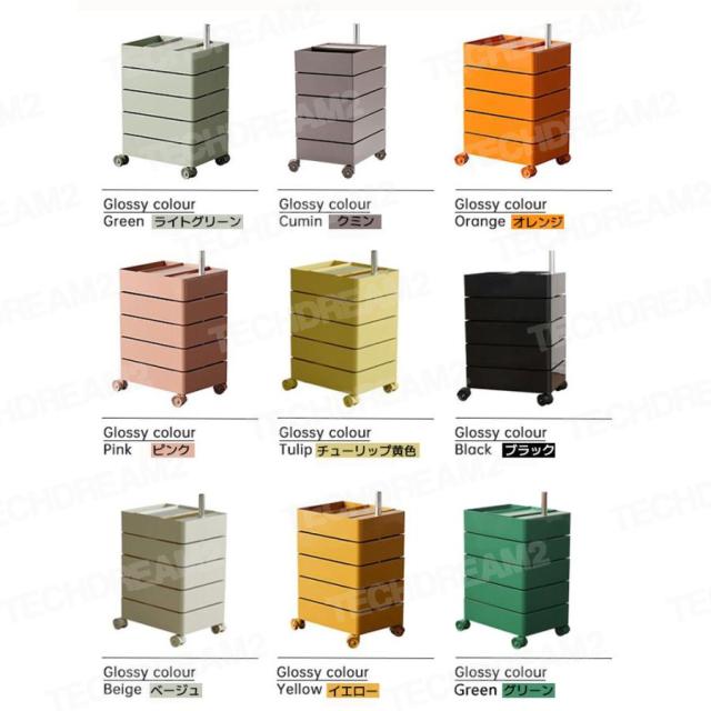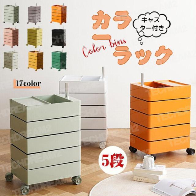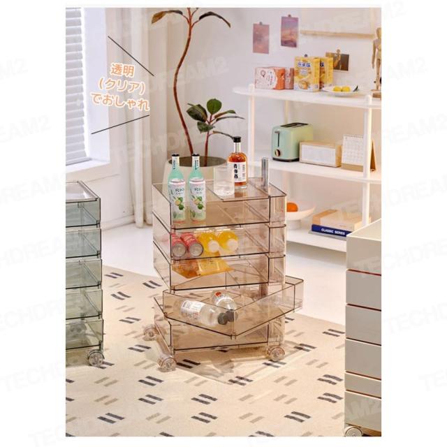 カラーラック ワゴン キャスター付き 5段 カラーラック 透明 クリア 収納 ラック 収納棚 回転式 トレイワゴン回転 スリム レトロ カラフル 韓国インテリア