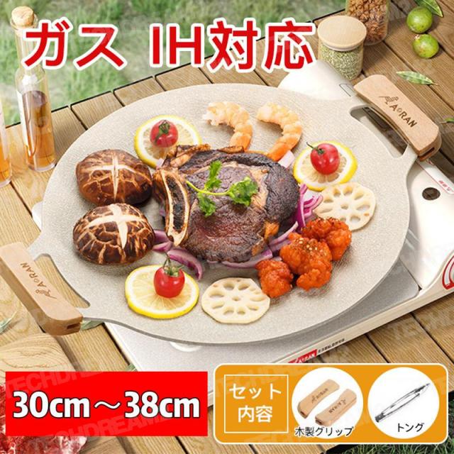 マルチグリドル 鉄板フライパン 30cm 34cm 36cm 38cm マルチグリドルパン 取っ手 直火/ガス/IH対応 軽量アルミ合金 グリルパン マルチグリドルパン
