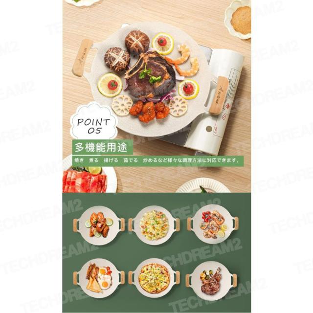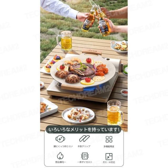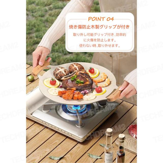 【さまざまな料理に適用】多機能マルチグリドル キャンプの食事に欠かせないです。バーベキュー、シチュー、炒め物など、さまざまな料理に適した鉄板多目的グリル。調理後にテーブルに直接置。家庭料理に最適なガスコンロをサポートします,IH電磁調理器は使用できます。作りたての温かい料理で家族の再会をお楽しみください。食器洗い乾燥機で洗えるので、食後の家事の負担を軽減できます。
