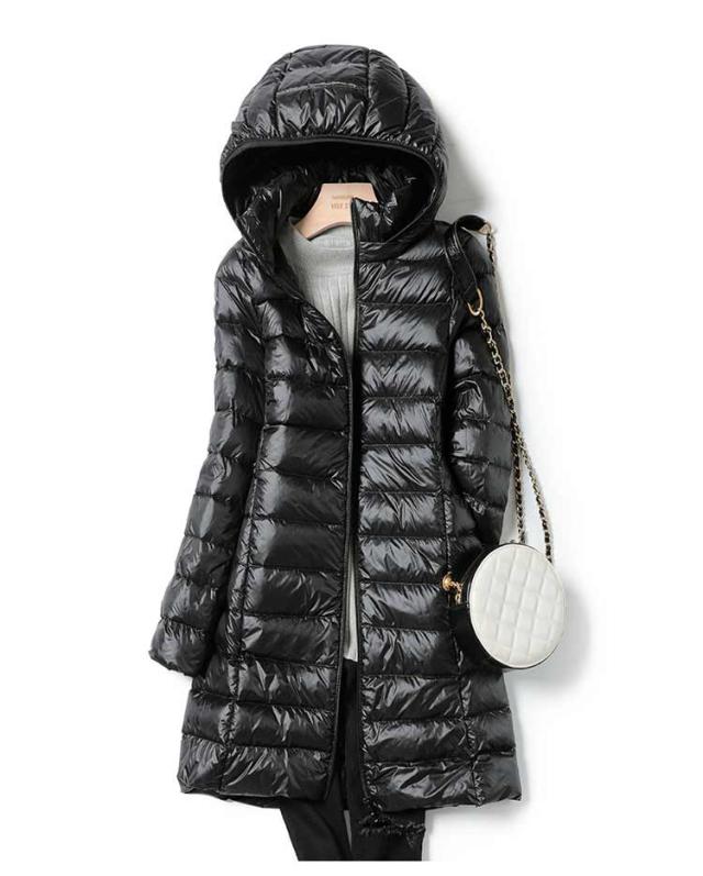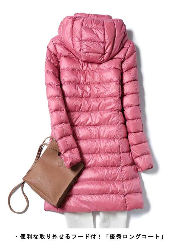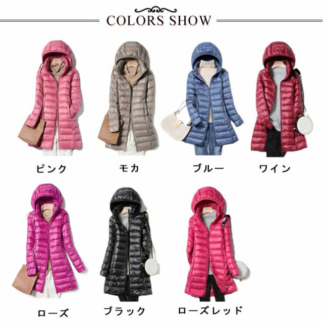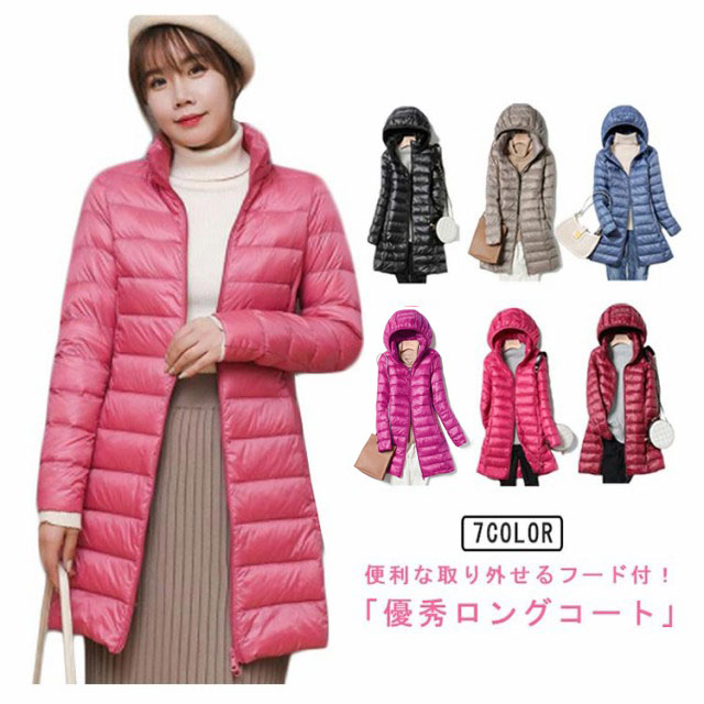 ダウンジャケット ダウンコート レディース ロング ライトダウン ポケッタブル 軽量 暖かい 薄型 フード付き スタンドカラー 大きいサイズ 撥水 防寒 スリム ナイロン