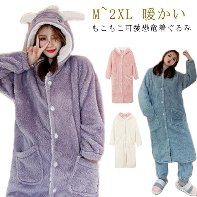大人用 ナイトウェア ホームウェア お祭り 部屋着 着ぐるみ ふわふわ ルームウェア モコモコ 恐竜 もこもこ ボア 暖かい パジャマ 怪獣 寝巻き 寝間着 動物 ワンピース フード付き ガウン レディース コスプレ ハロウィン