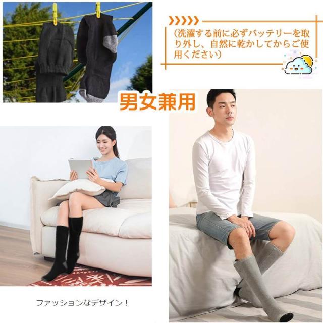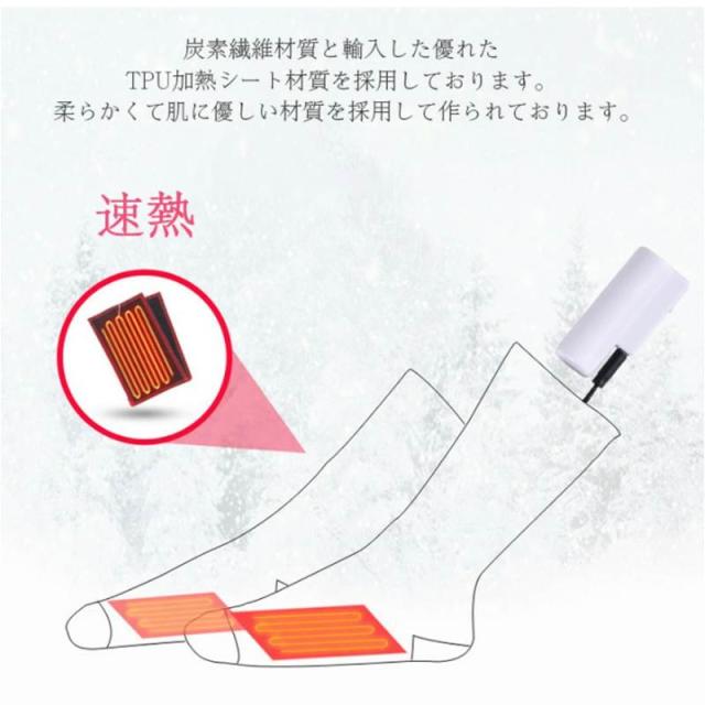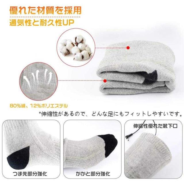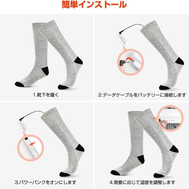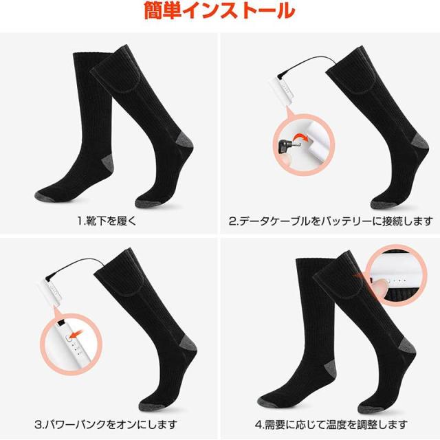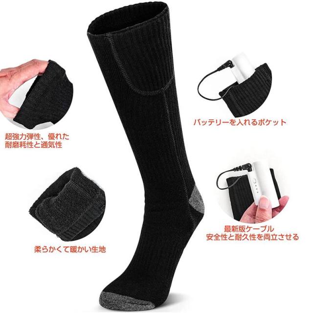 ヒーターソックス 電熱靴下 加熱ソックス 加熱靴下 USB充電式 3段階温度調節 水洗い可能 バイク アウトドア 男女兼用 防寒ソックス